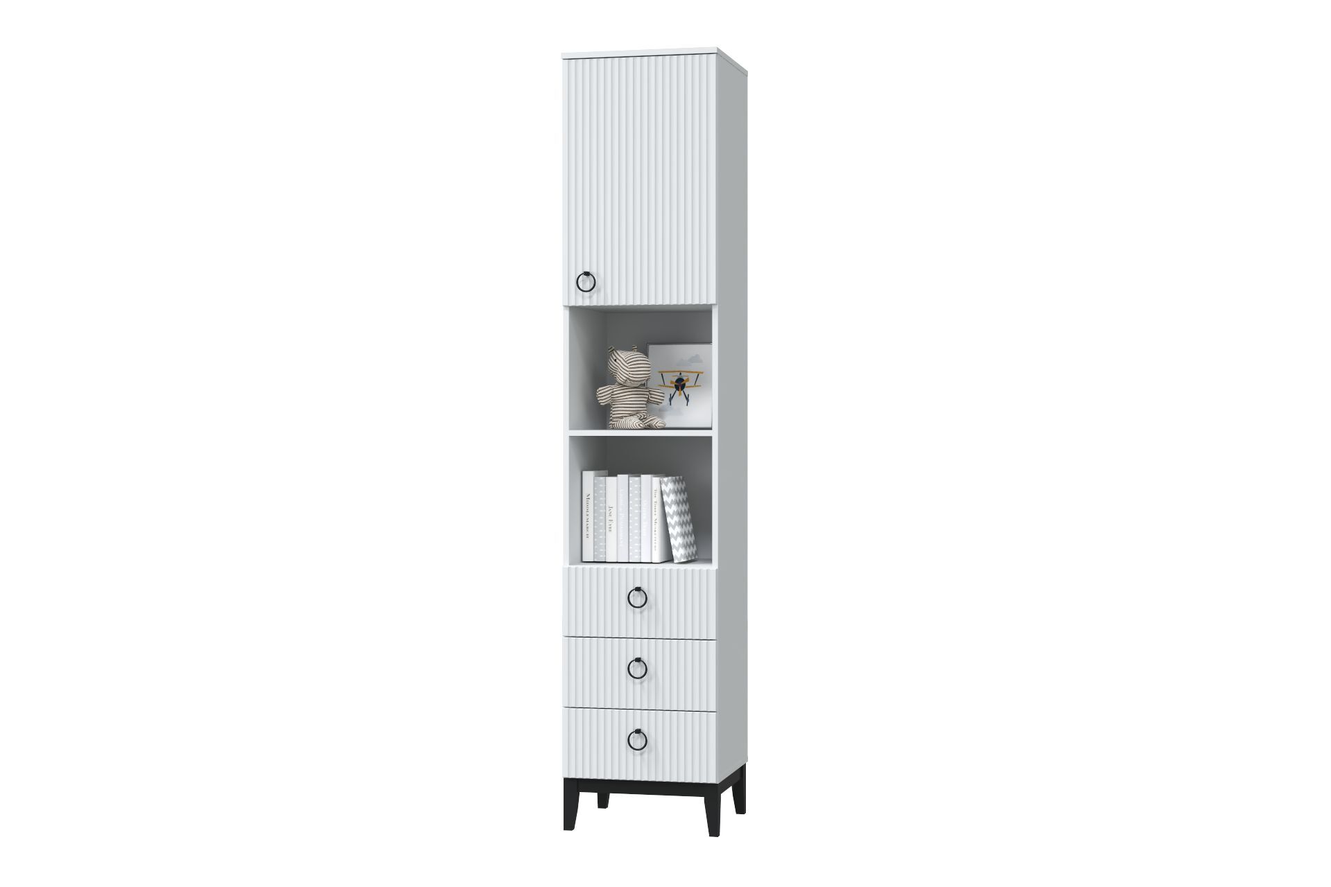 Особенностью данного шкафа является наличие ящиков и полок. Три полки позволяют разместить большое количество книг и других предметов, а ящики обеспечивают дополнительное пространство для хранения мелких вещей.