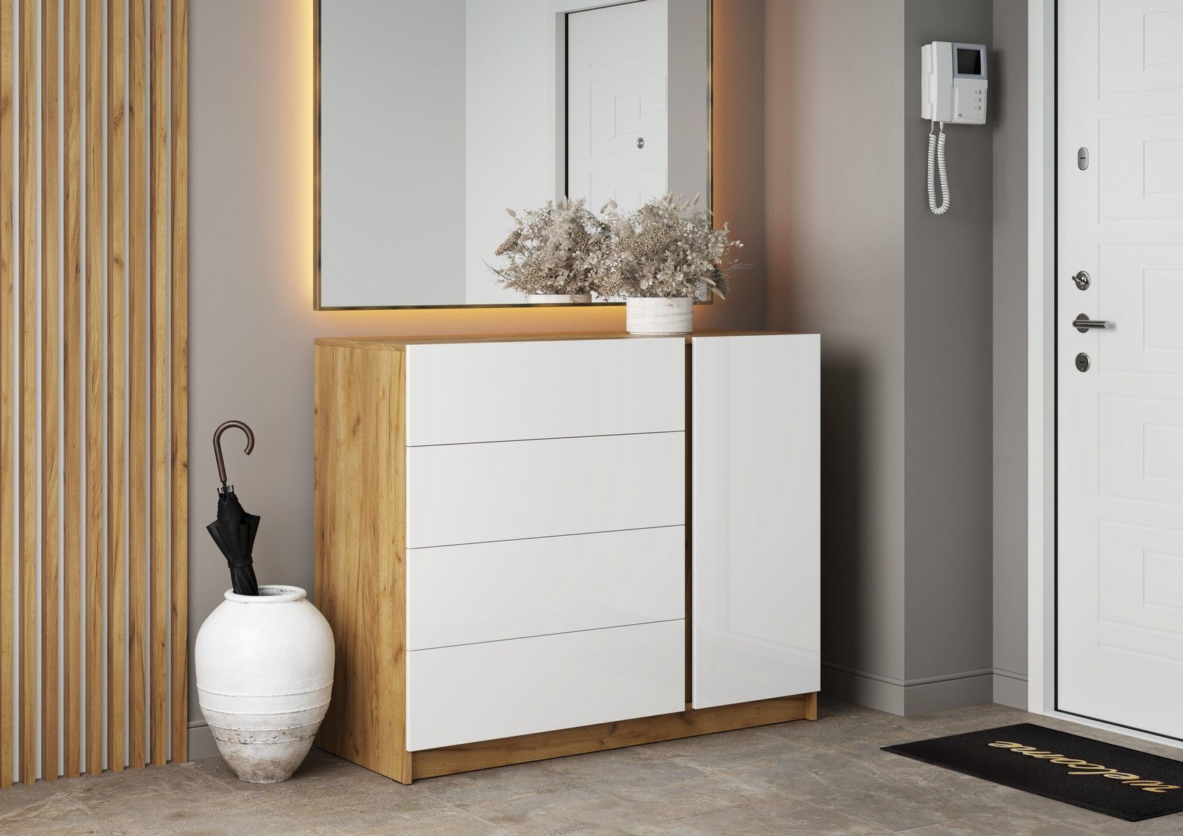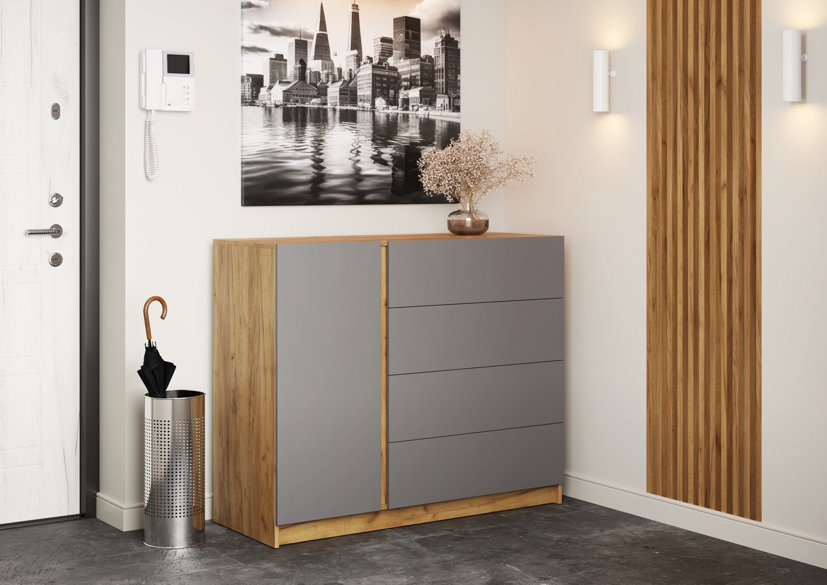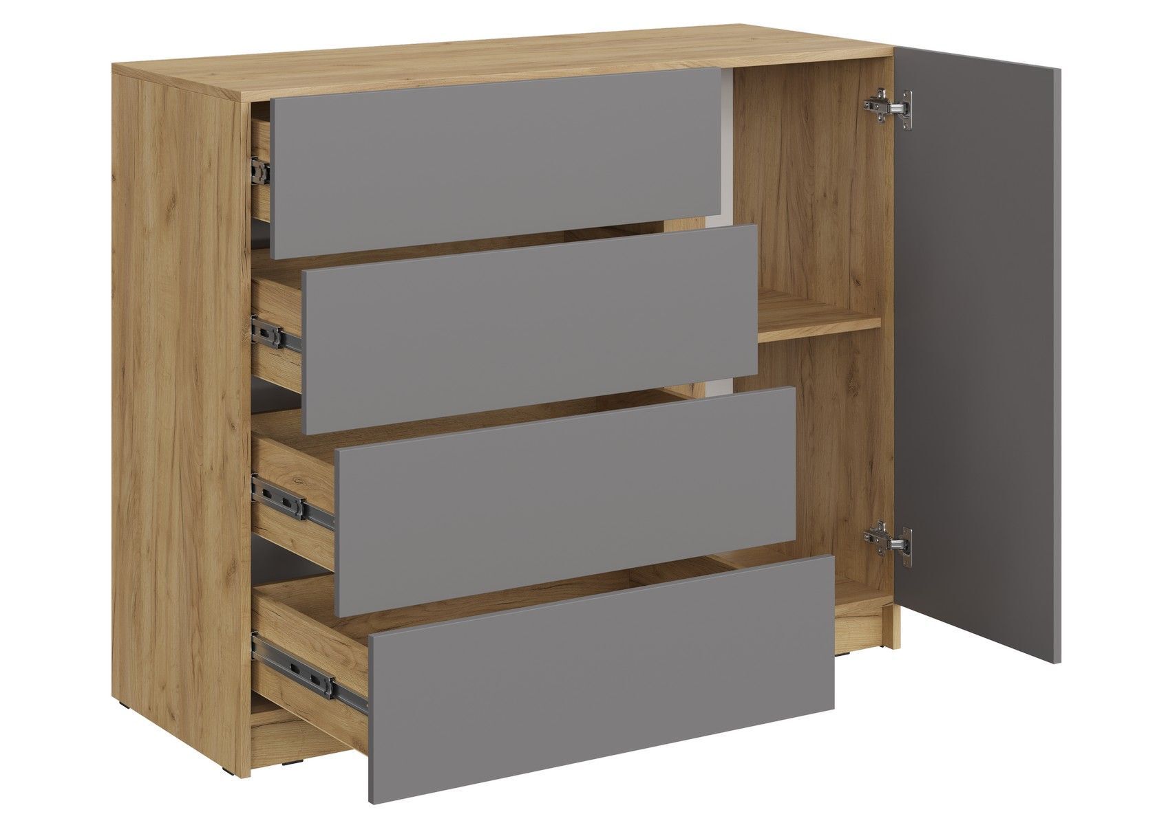 • изделие имеет универсальную сборку: ящики(4шт.) справа/слева, открывание створки (1шт.)соответственно налево/направо);