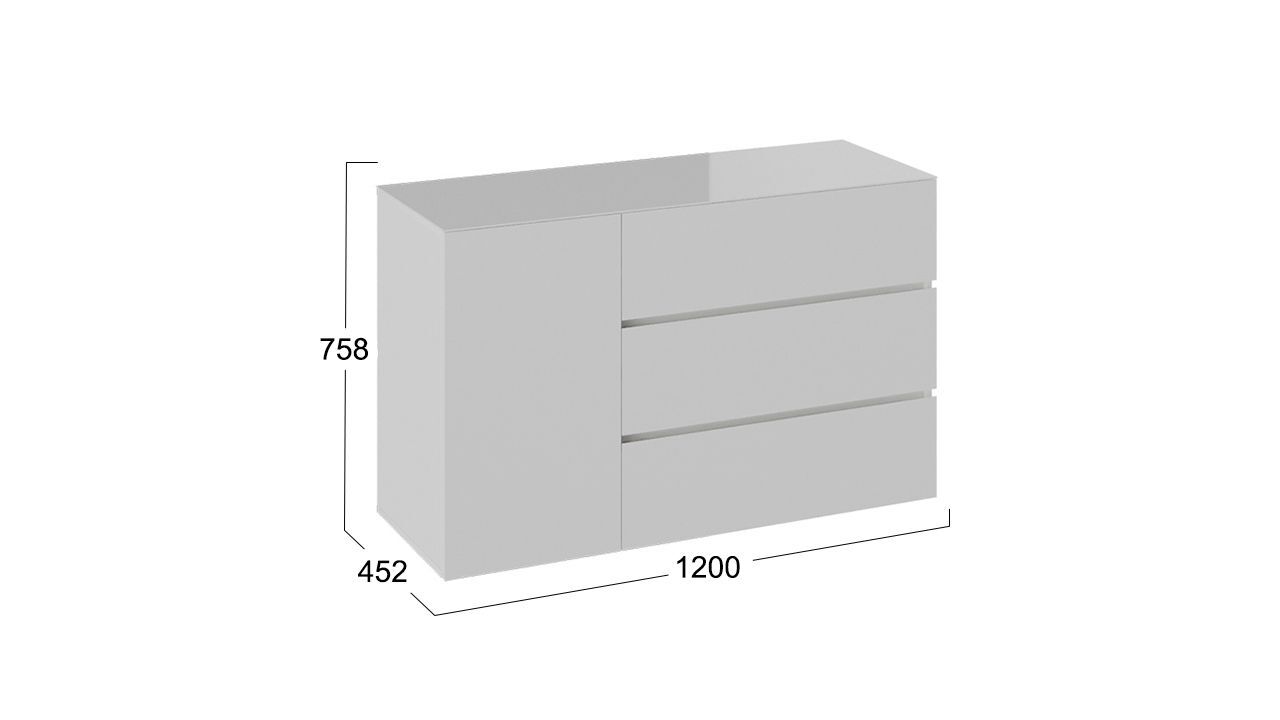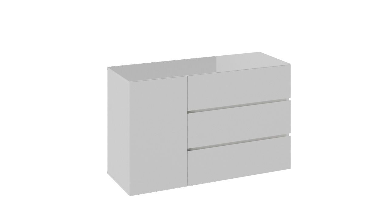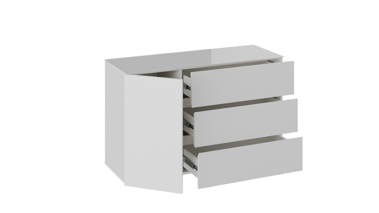 Комод для одежды с ящиками и полками выполнен в современном стиле и представлен в белом цвете с глянцевым покрытием.