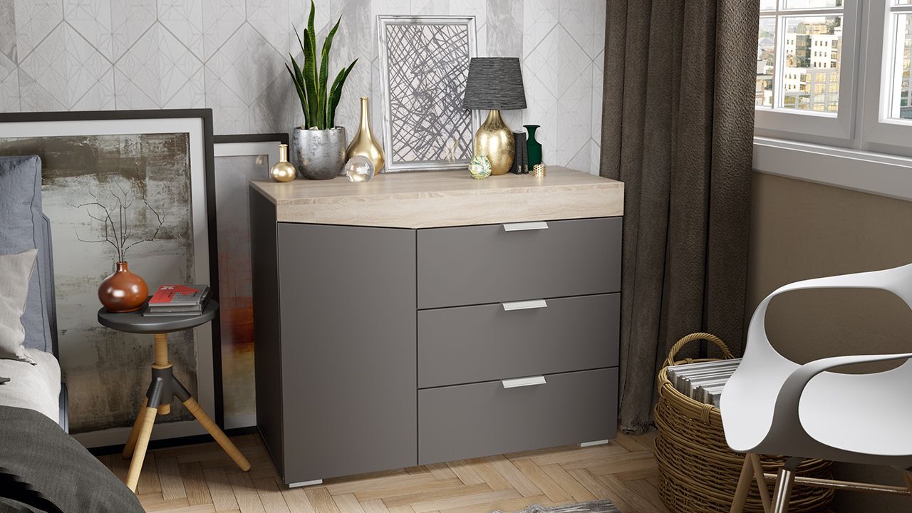 Комод для одежды с ящиками и полками Дуб Сонома/Графит Серый 3 ящика 100х45х79 см - это стильный и функциональный предмет мебели, который станет незаменимым помощником в организации пространства.