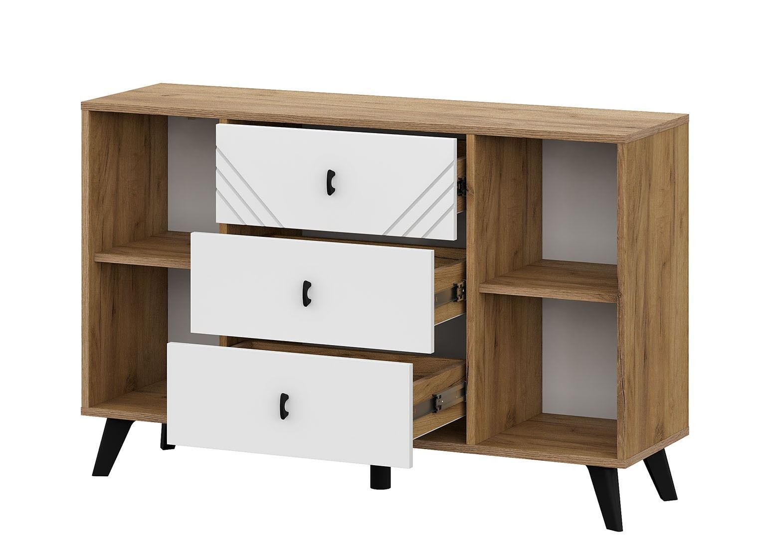 Комод для одежды с ящиками и полками "Дуб Золотой/Белый" - это сочетание практичности и выразительного дизайна.