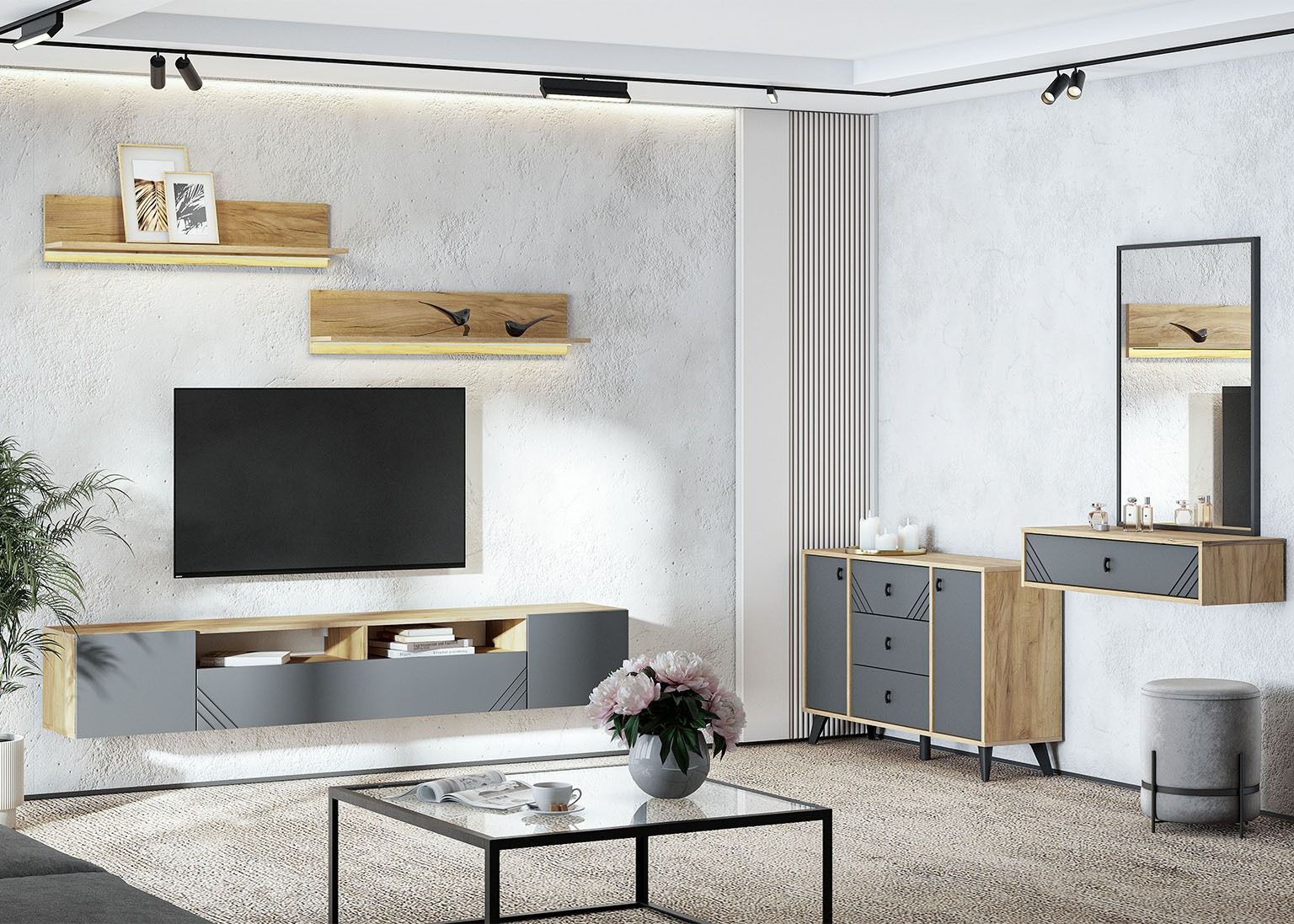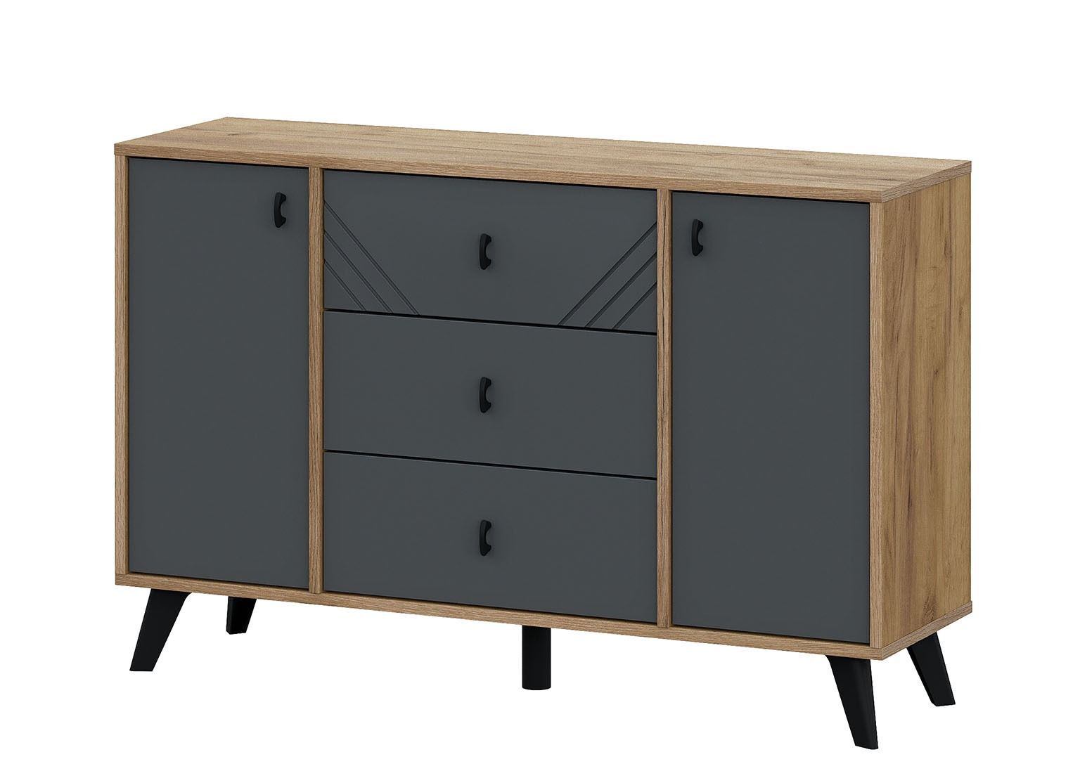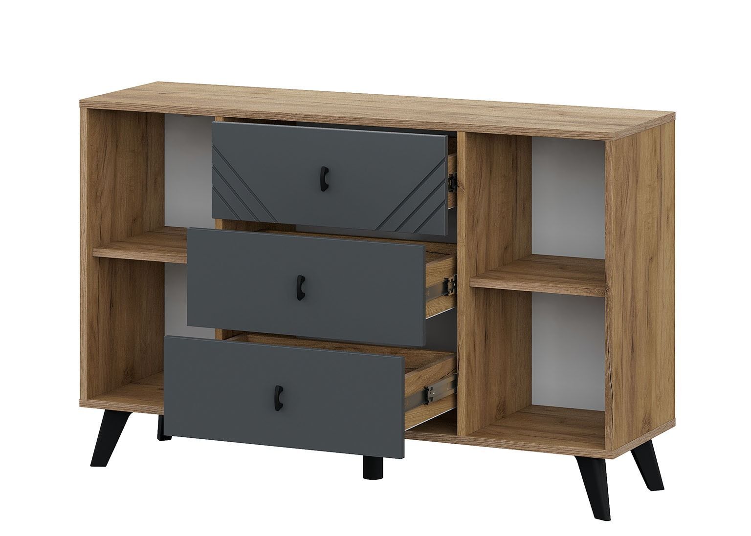 Комод из коллекции «Байкал» — это гармония практичности и выразительного дизайна. Фасад из МДФ с чёрными акцентами в виде ручек создаёт стильный контраст, подчёркивая графичность форм. Центральная часть комода — это три вместительных ящика на шариковых направляющих полного выдвижения. По бокам — секции со створками и внутренними полками, идеально подходящие для хранения одежды, текстиля или других вещей. Комод установлен на высокие ножки, что облегчает уборку, включая использование робота-пылесоса. Лаконичная фрезеровка фасадов, матовая текстура и белый цвет придают модели свежесть и визуальную лёгкость. Отлично сочетается с другими элементами модульной системы «Байкал» — для создания цельного и функционального интерьера.