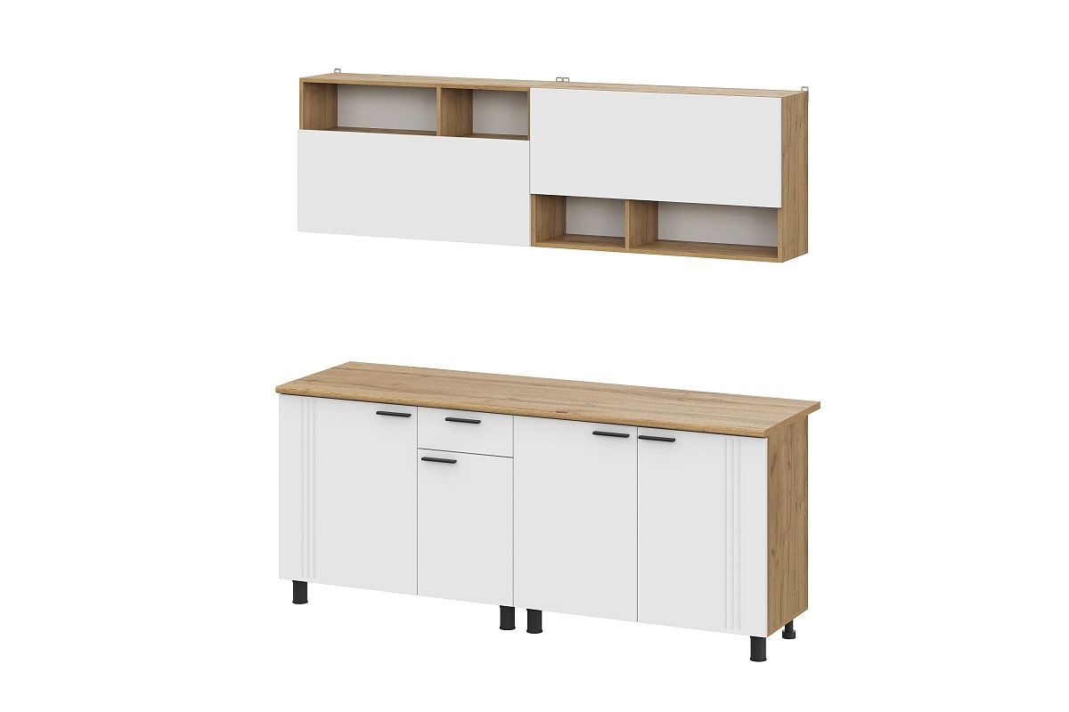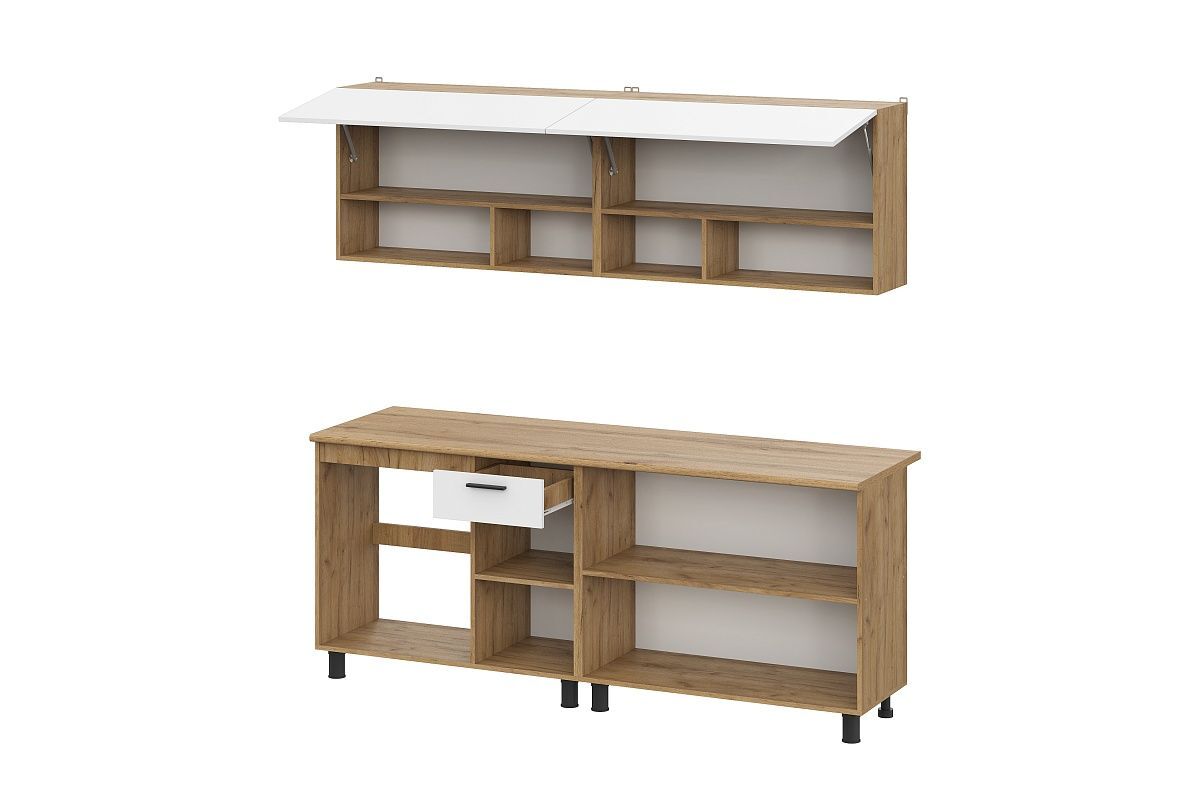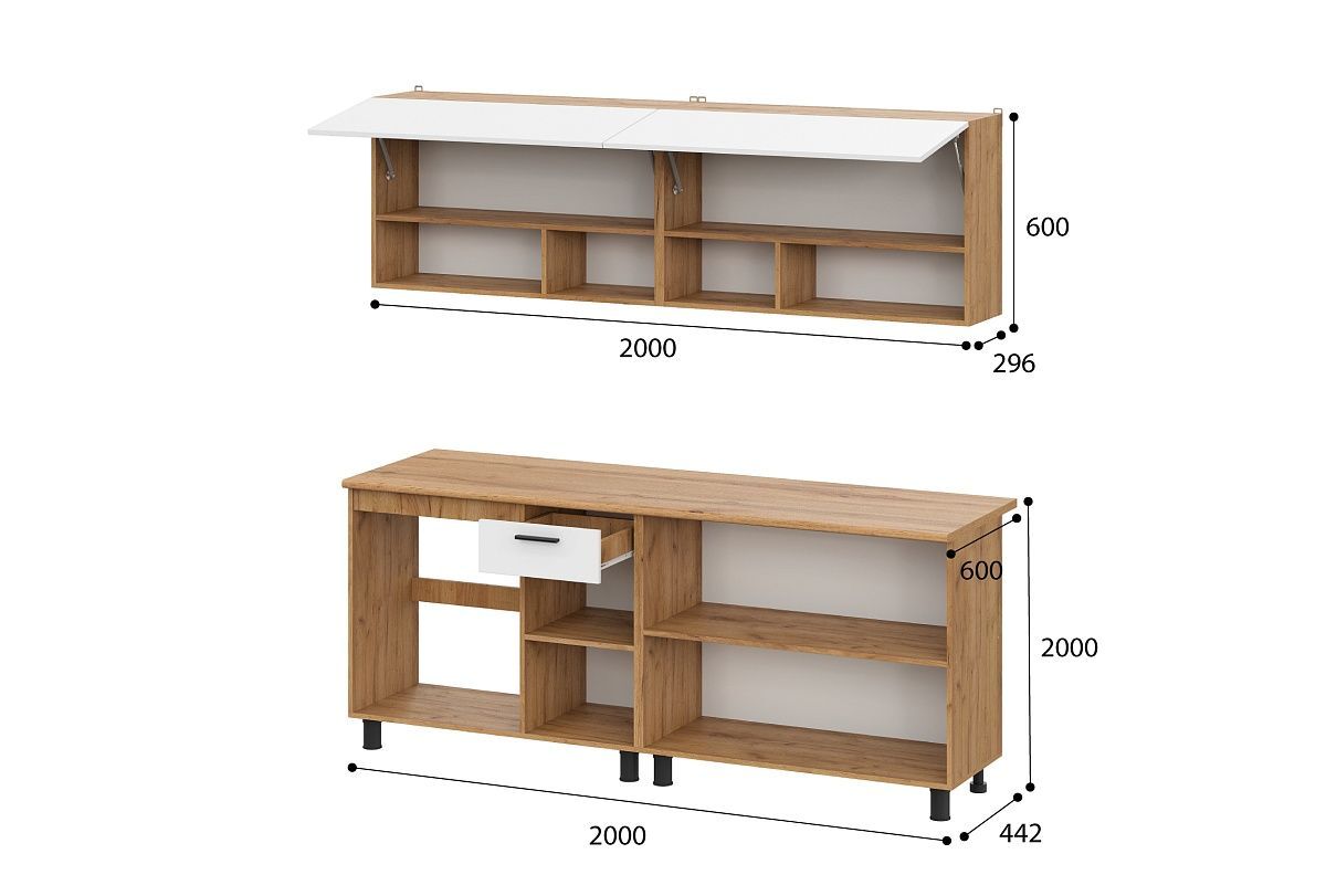 Гарнитур оборудован ящиками и полками, что позволяет максимально эффективно использовать пространство. В комплекте с гарнитуром идут крепеж и инструкция, что облегчает процесс сборки и установки.