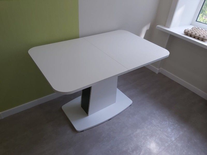 Особенности: данный стол состоит из оригинальной столешницы и массивной ножкой-опорой; Каркас и столешница кухонного стола сделаны из материала ЛДСП толщиной 16 мм и 22 мм; Механизм с синхронным открыванием делает процедуру раскладывания стола очень удобной и легкой; В разложенном состоянии длина стола составляет 152 см.