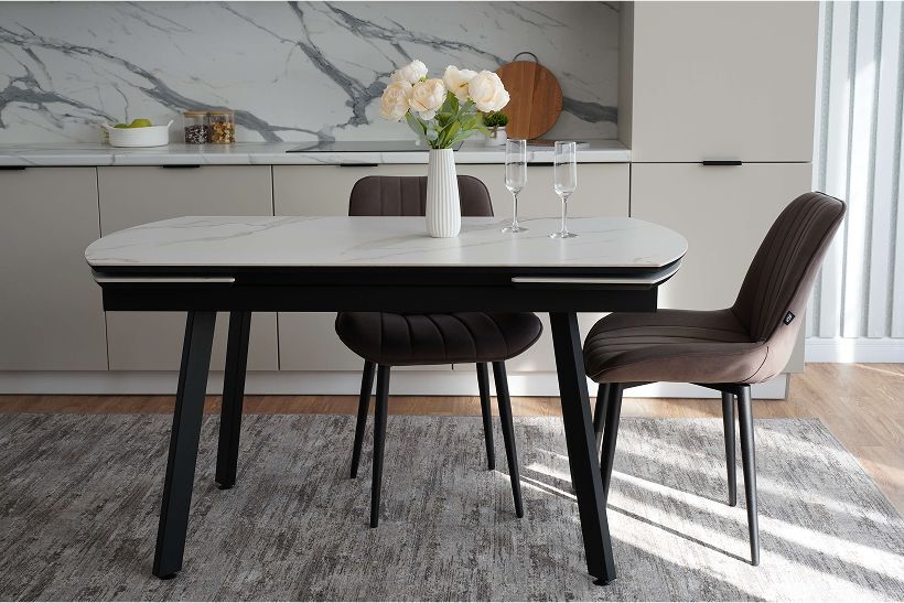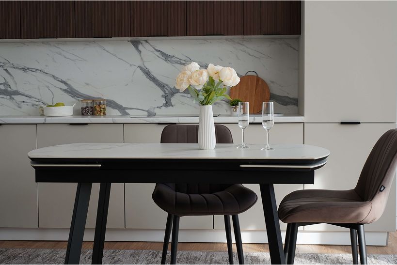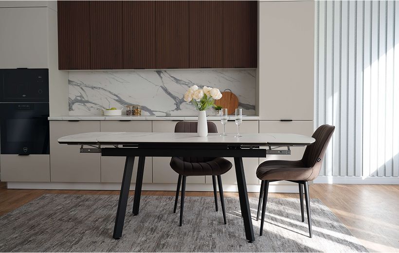 Стол из керамогранита и металла — это долговечно, стильно, современно.