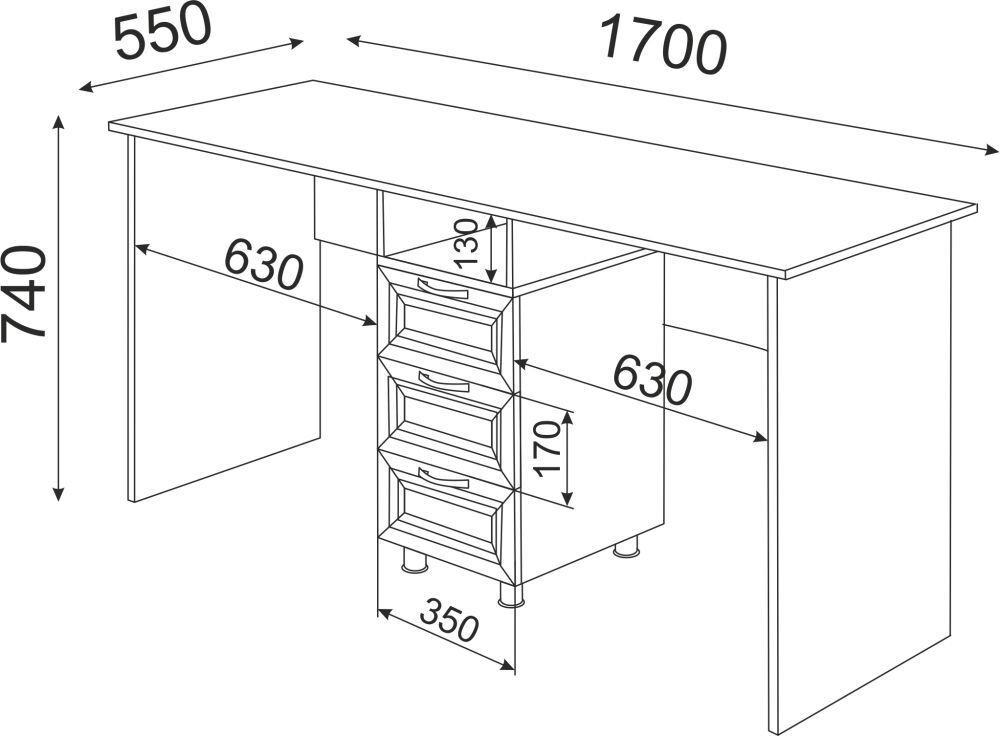 Особенности изделия: 1. Стол расчитан на два рабочих места и предназначен для обстановки комнаты двоих детей.