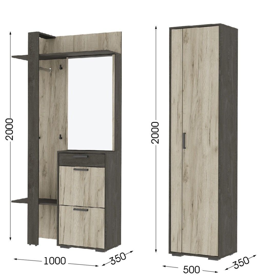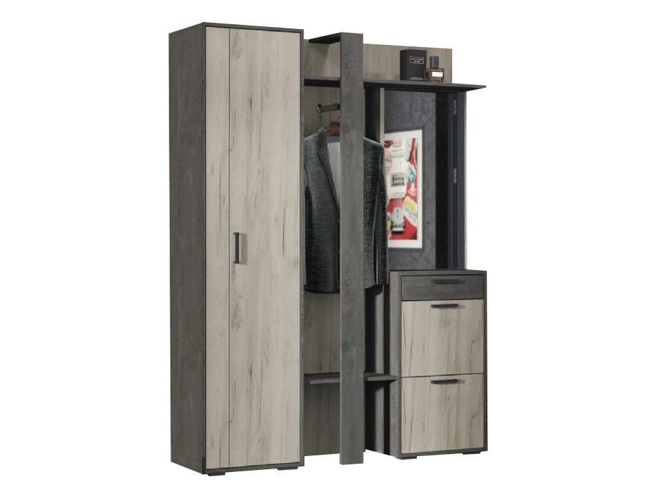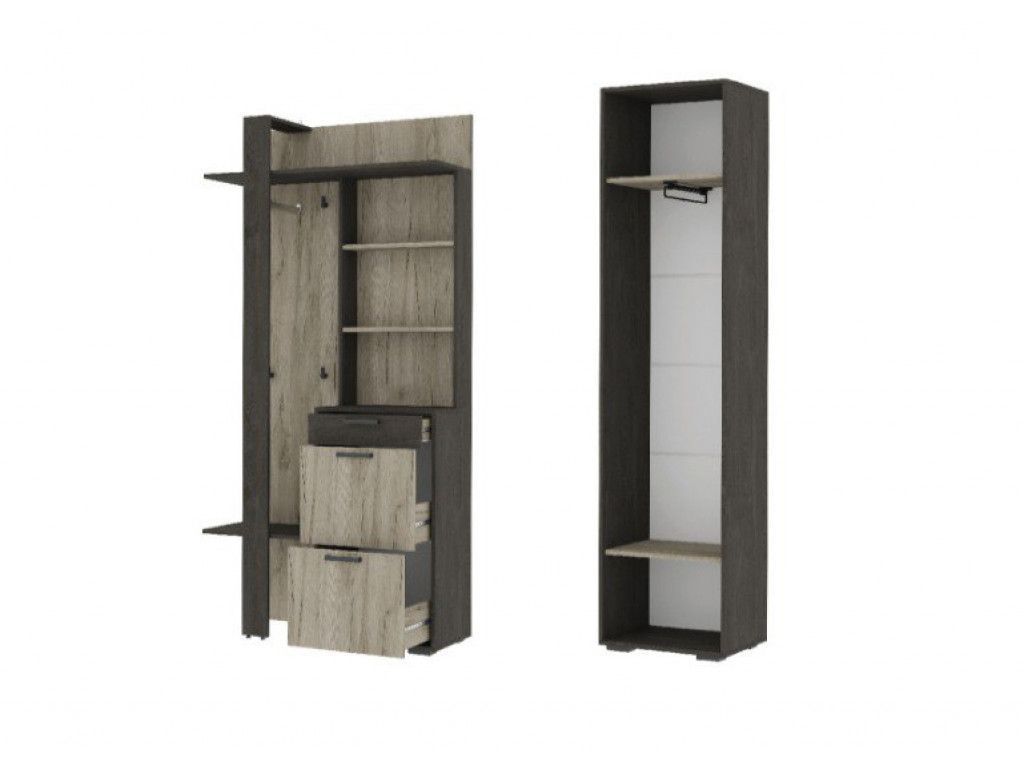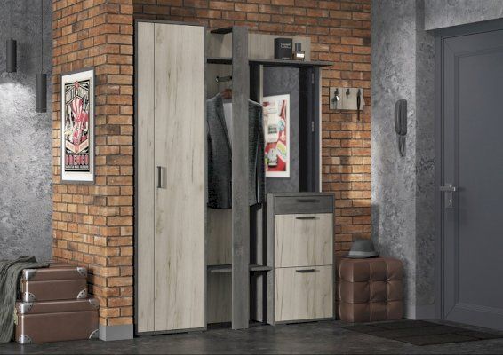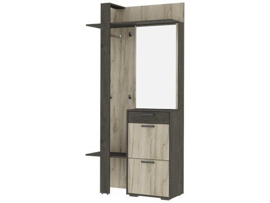 Прихожая Эдинбург оснащена двумя обувными ящиками, одним зеркалом, вешалкой с штангой и открытыми полочками. Необходимое количество полок в шкафу обеспечат достаточно места для верхней одежды, обуви, головных уборов и других аксессуаров.