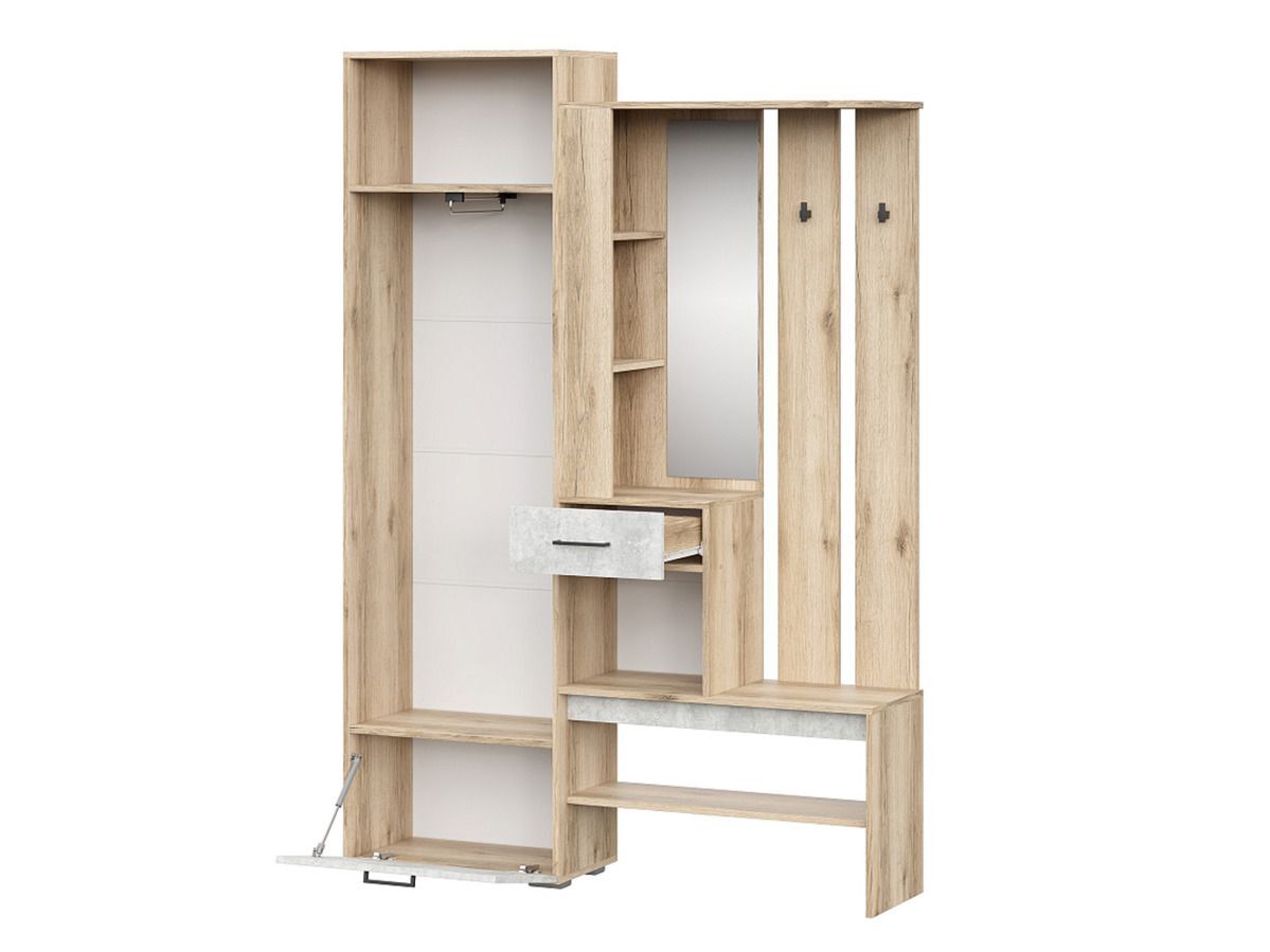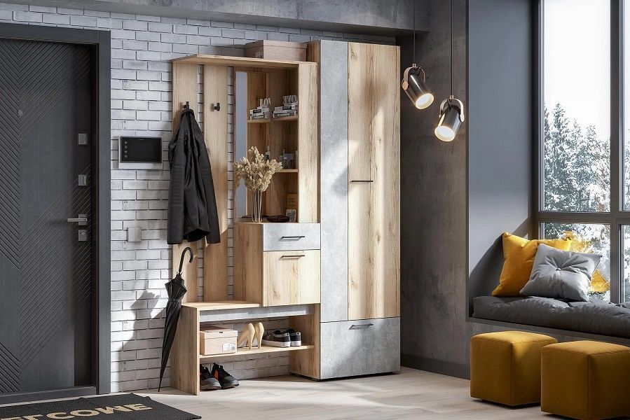 Эта прихожая является готовым решением для интерьера и идеально подойдет как в малогабаритную прихожую, так и в качестве части комплексной обстановки. Ее конструкция имеет все необходимое: