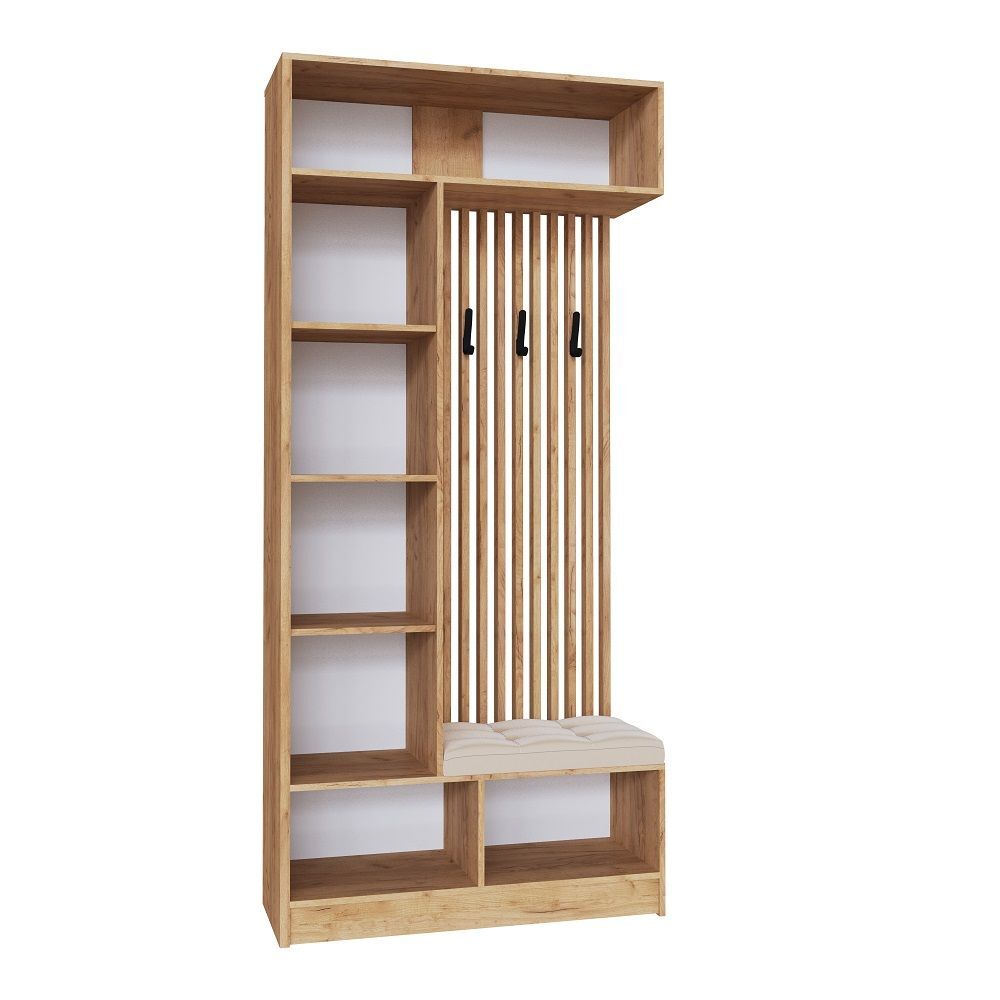 Благодаря стильному дизайну и компактным размерам вешалка Руэлла впишется в малогабаритную прихожую или квартиру-студию. Наличие полок, надежные крючки и ниша под обувь позволят разместить верхнюю одежду, уличную и домашнюю обувь, сезонные аксессуары и головные уборы, а наличие мягкого сидения добавит комфорта от ежедневных сборов перед выходом на улицу.