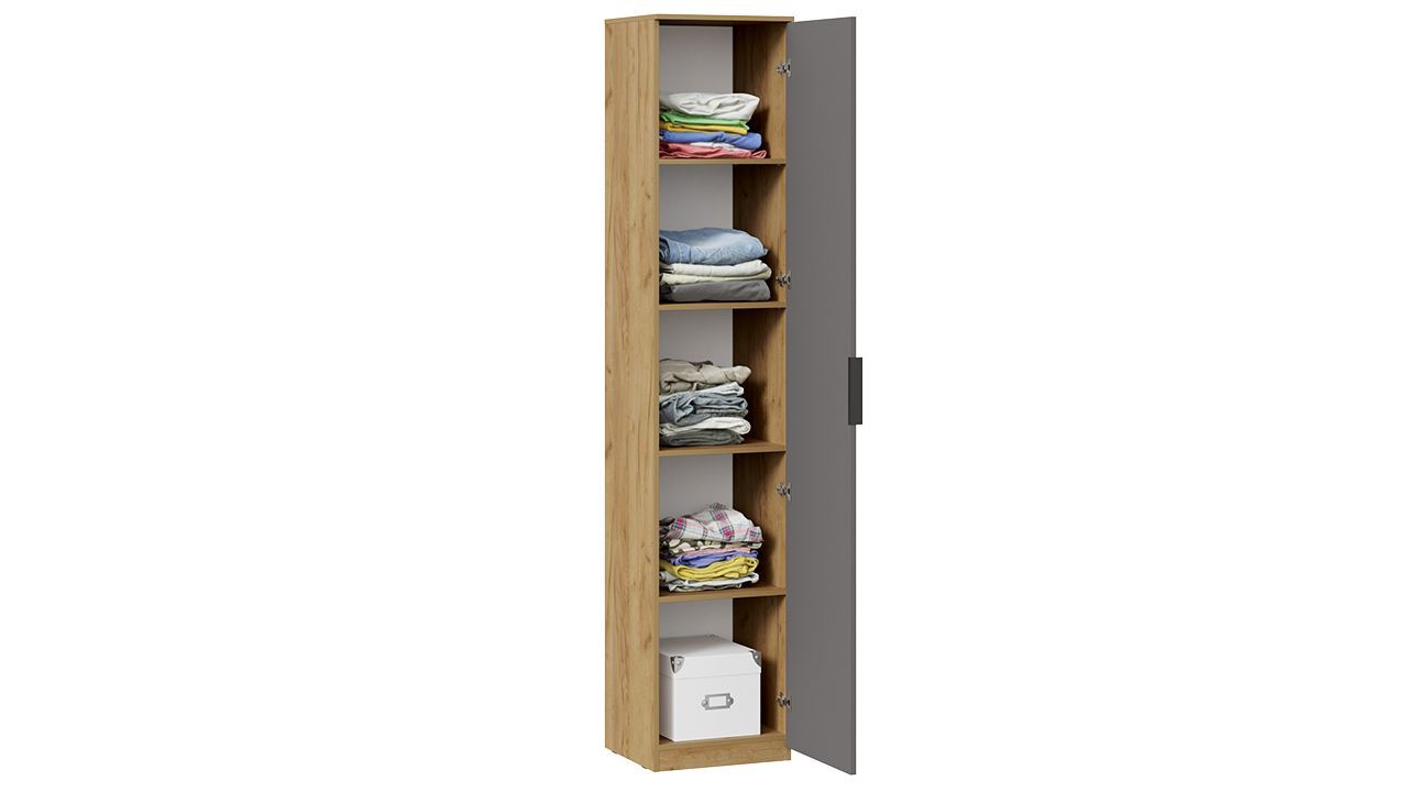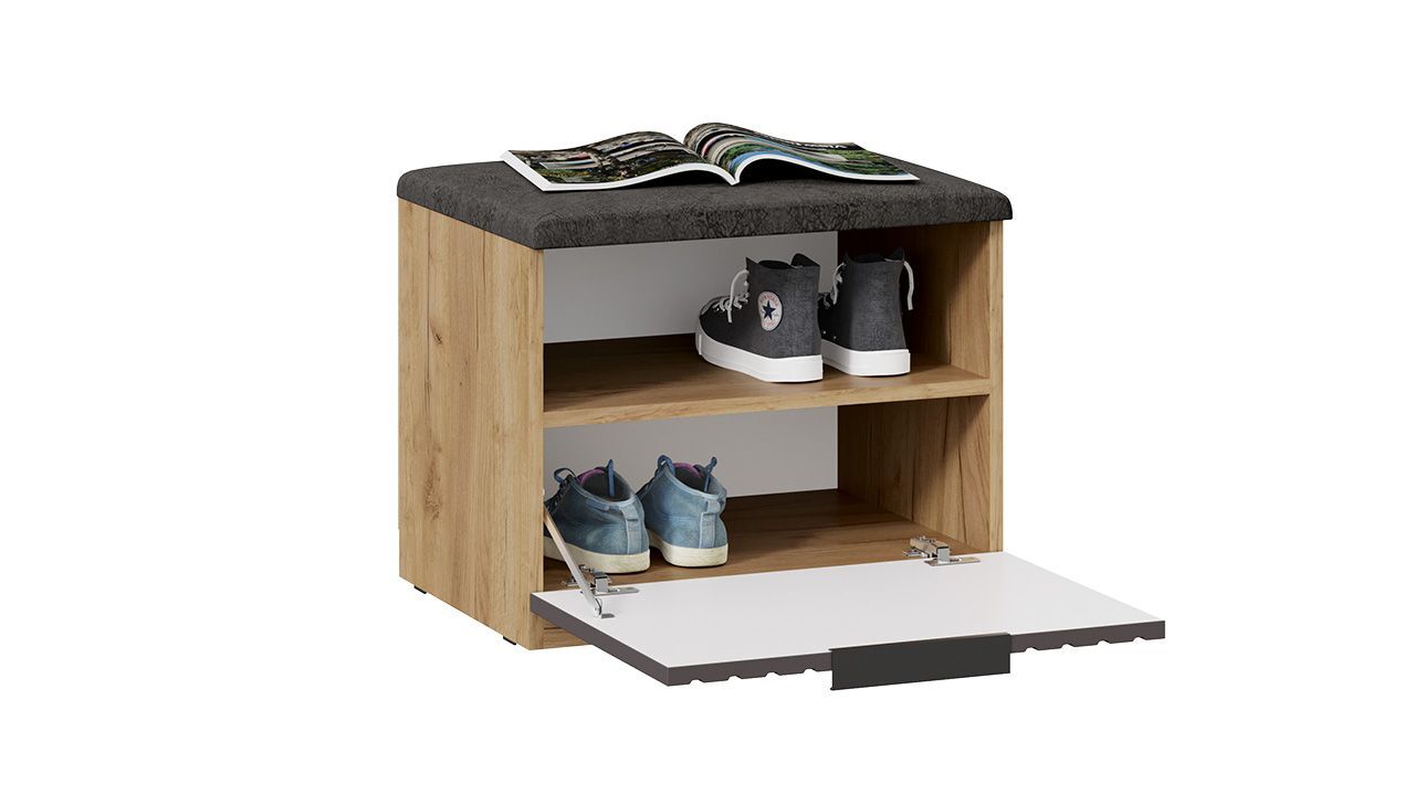 Прихожая выполнена в современном стиле, который гармонично впишется в любой интерьер. Цвет товара - Дуб Крафт золотой/Графит матовый, что позволяет сочетать его с различными оттенками и стилями.