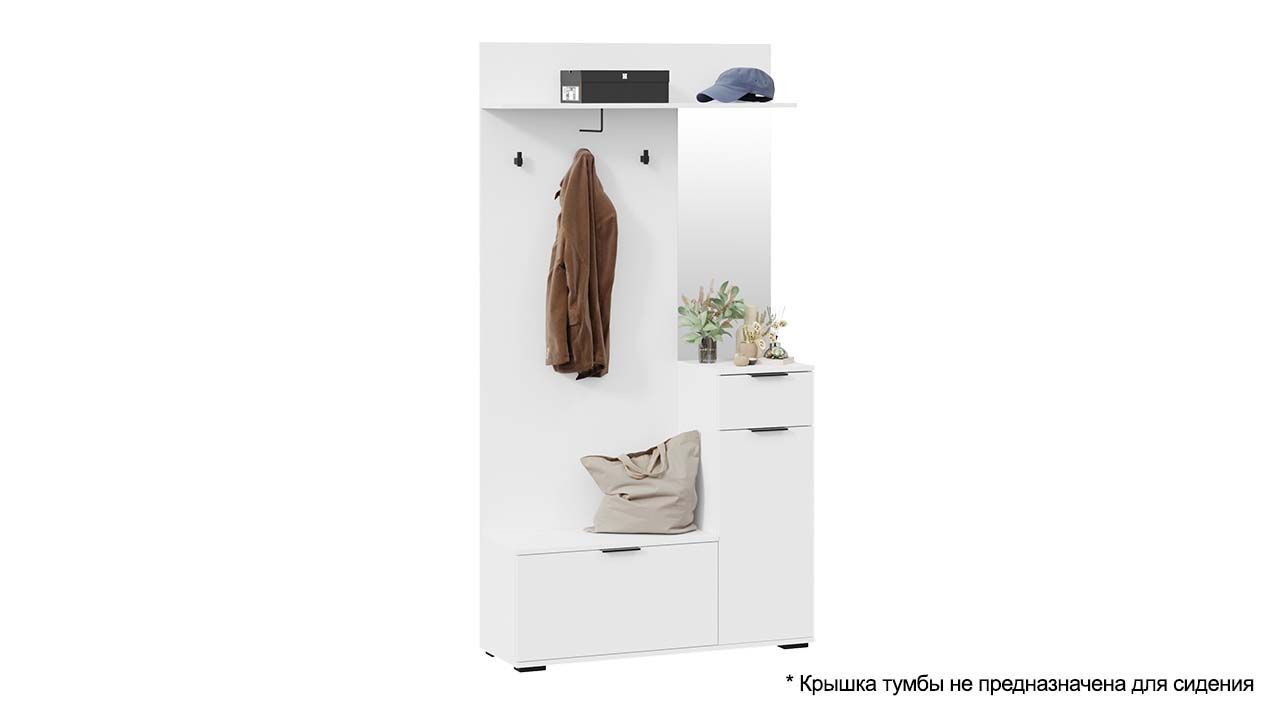 Прихожая с зеркалом "Белый Ясень" представляет собой комплект мебели, состоящий из вешалки, комода, обувницы, зеркала и полки. Этот набор мебели предназначен для создания уютной и функциональной зоны в прихожей, обеспечивая удобное хранение вещей и отражение в зеркале.