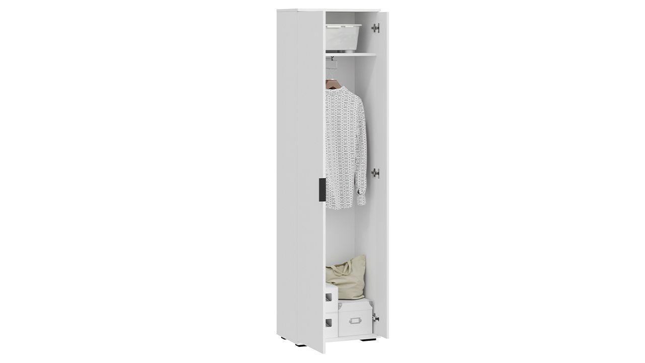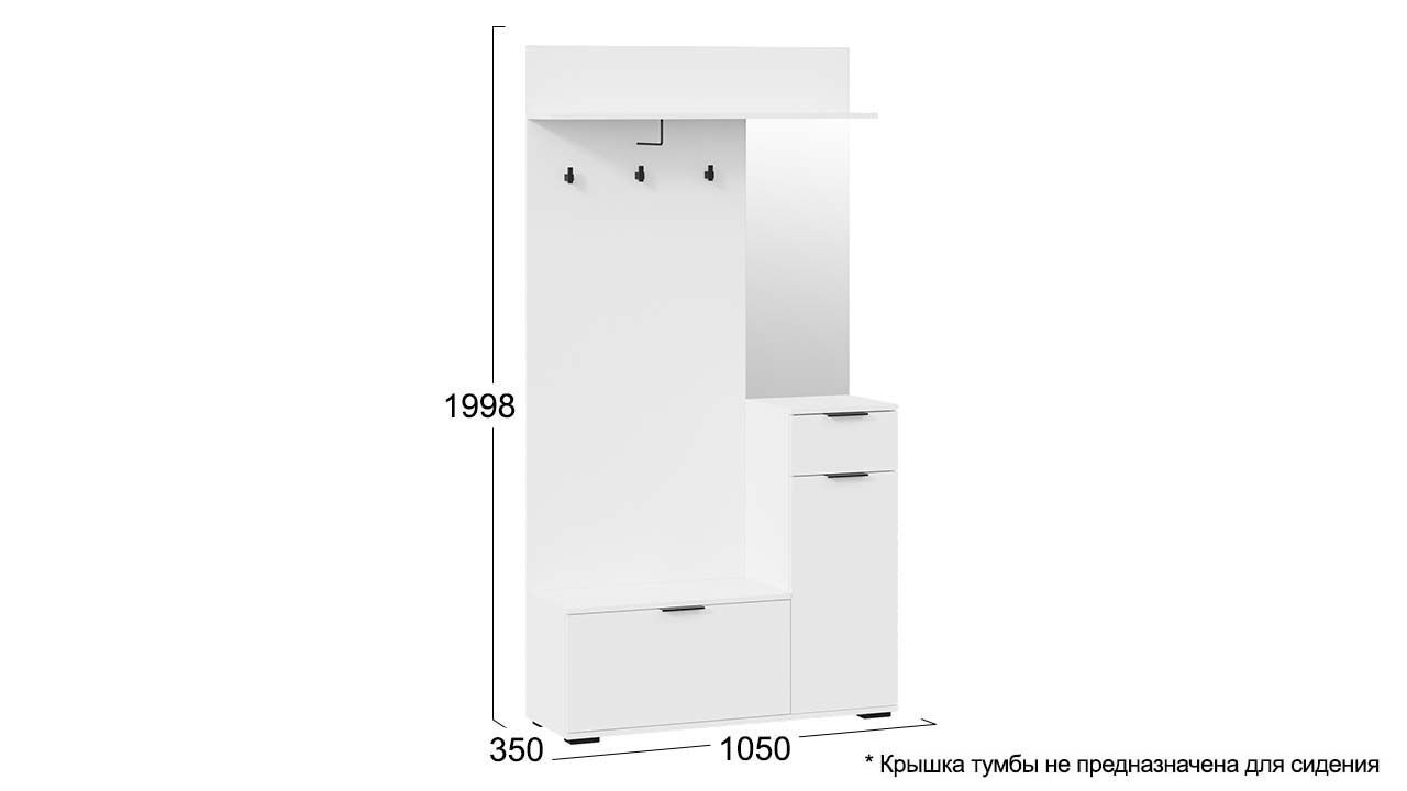 Прихожая с зеркалом "Белый Ясень" представляет собой комплект мебели, состоящий из шкафа для одежды, вешалки, комода, обувницы, зеркала и полки.