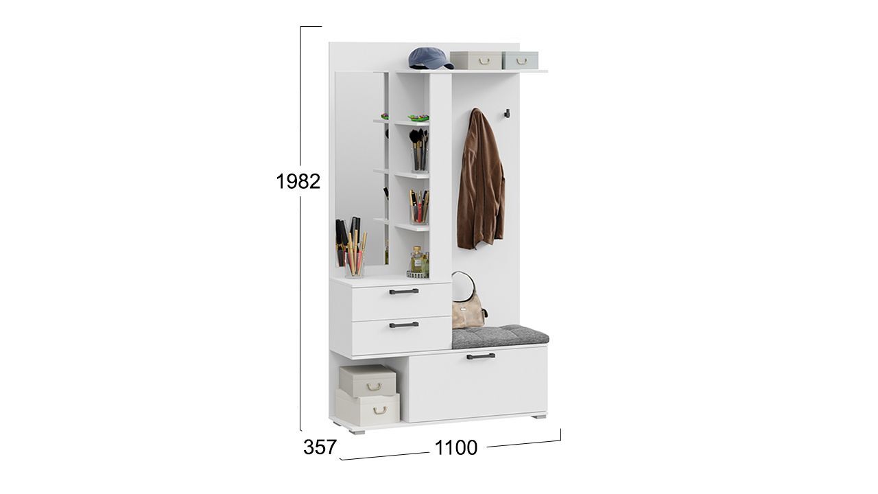 Выбирая прихожую с зеркалом "Белый Ясень", вы получаете стильный, функциональный и практичный комплект мебели, который станет отличным дополнением к вашему интерьеру и обеспечит удобное хранение вещей.