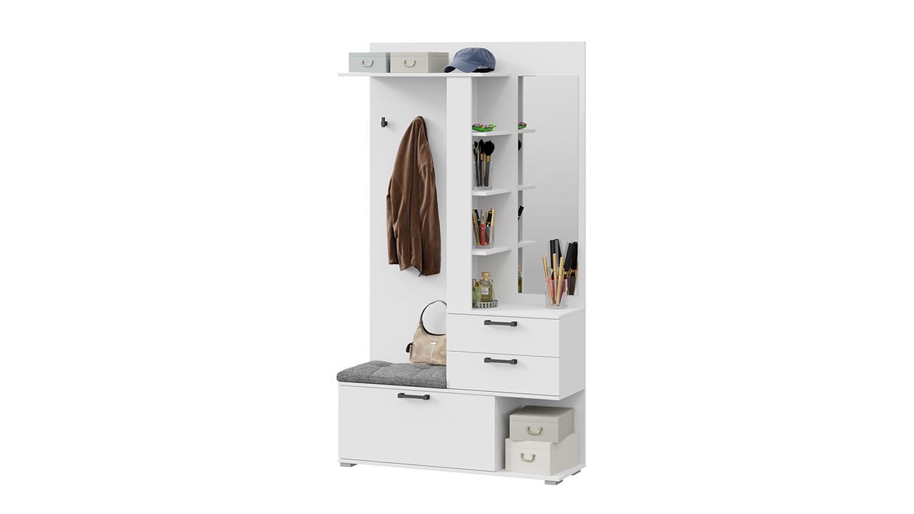 Стиль и цвет: прихожая выполнена в современном стиле и имеет белый цвет, который легко впишется в любой интерьер.