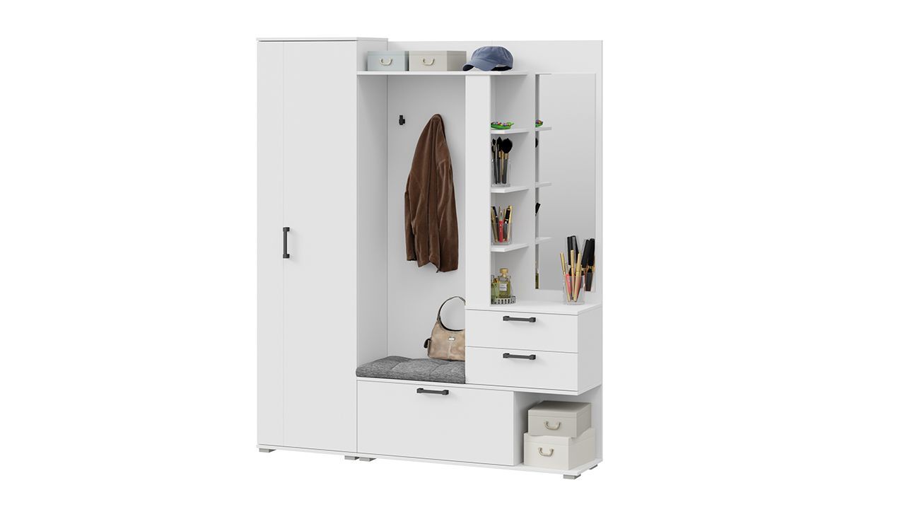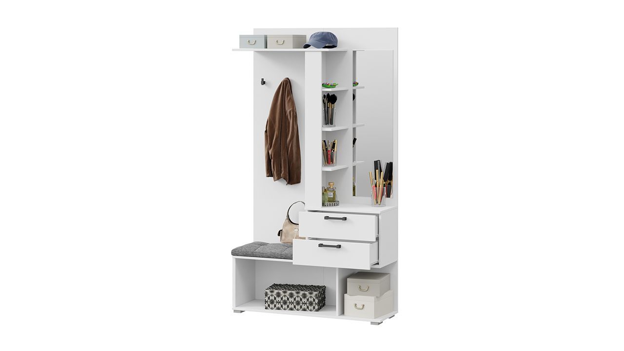 - Вешалка оснащена штангой для вешалок, что позволяет удобно хранить верхнюю одежду. - С обувницей, которая обеспечивает порядок и быстрый доступ к обуви. - С полками, на которых можно разместить различные аксессуары и предметы. - С зеркалом, которое позволяет увидеть себя в полный рост и поправить внешний вид перед выходом. - Со штангой для вешалок, что обеспечивает удобство использования. - С ящиками, в которых можно хранить мелкие предметы.