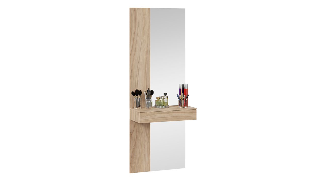 Комплект включает в себя шкаф для одежды, консоль, стеллаж и зеркало. Это позволяет максимально эффективно использовать пространство и обеспечивает удобное хранение вещей.