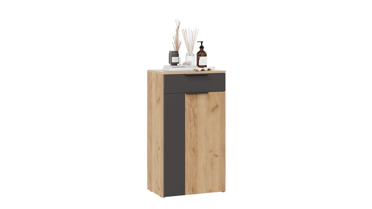 Стиль комплекта - современный. Цвет мебели - бежевый и черный, что позволяет ей гармонично вписаться в любой интерьер. Производитель использует название цвета "Дуб крафт золотой/Антрацит_2".