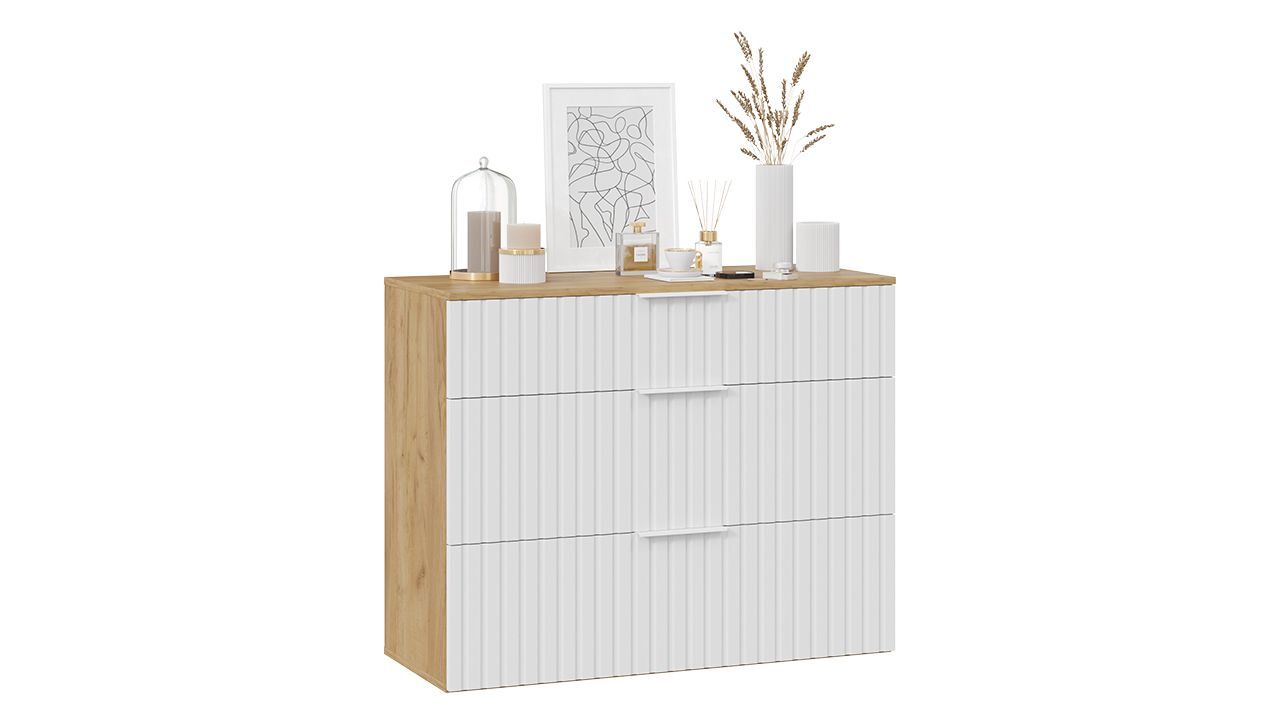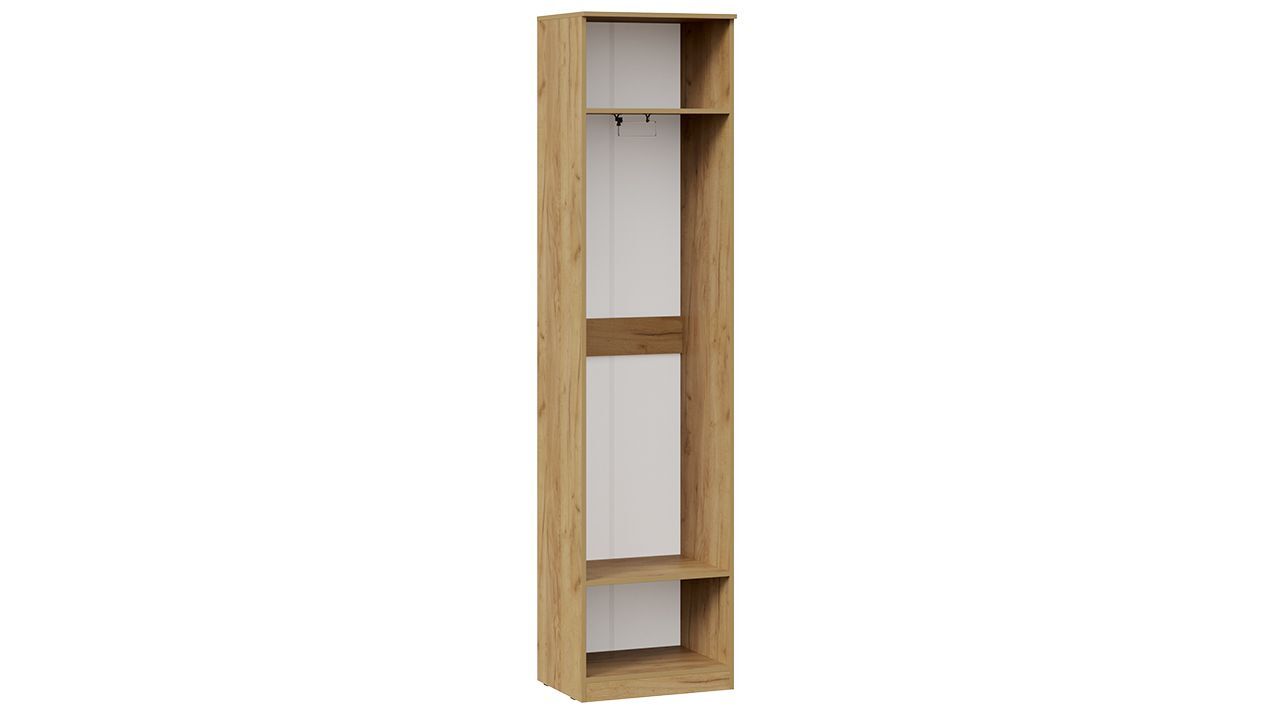 Прихожая выполнена в современном стиле и имеет бежевый и белый цвет. Производитель называет этот цвет "Дуб Крафт золотой/Белый матовый".