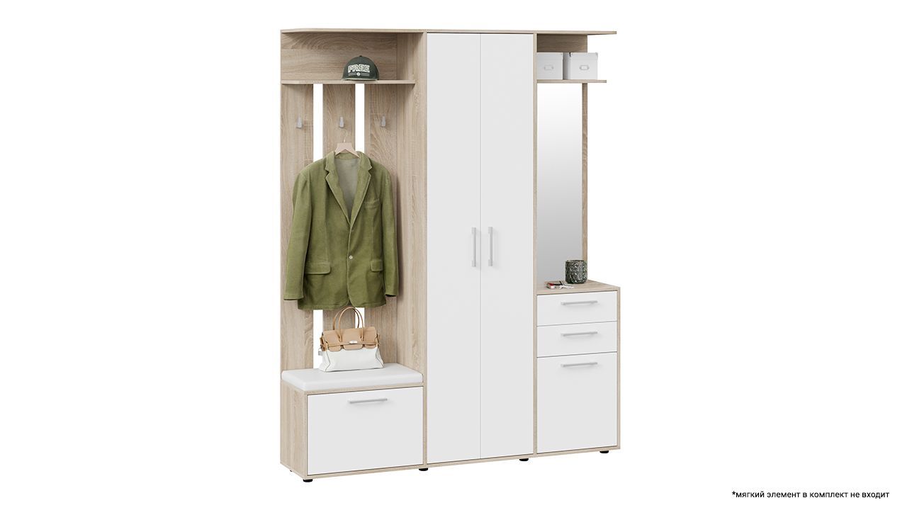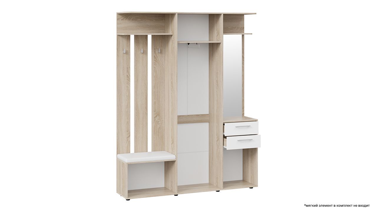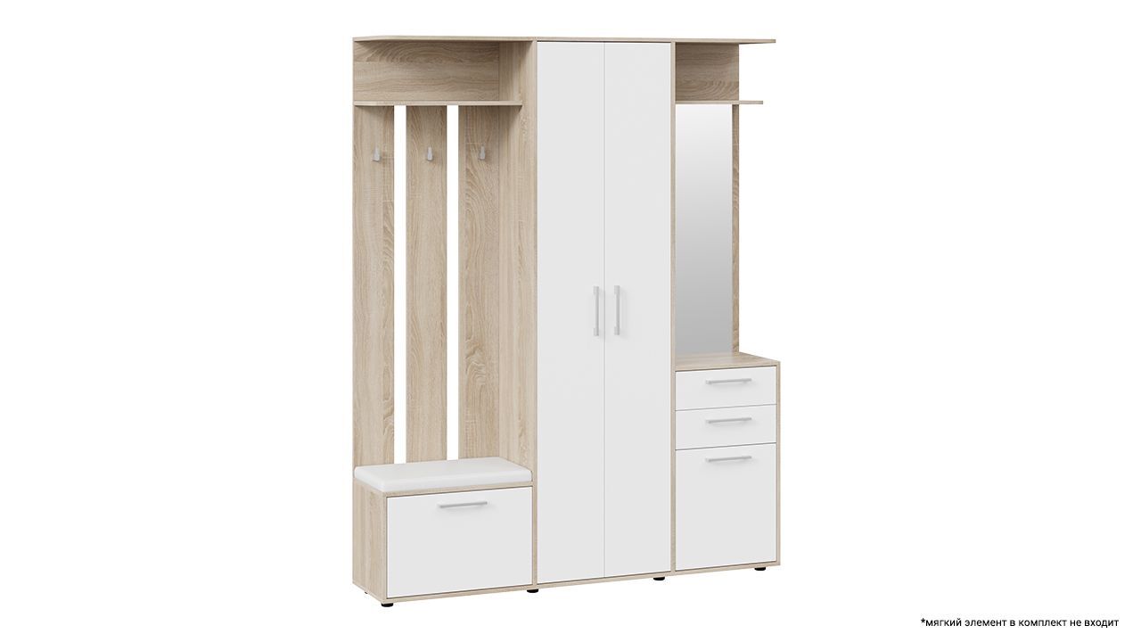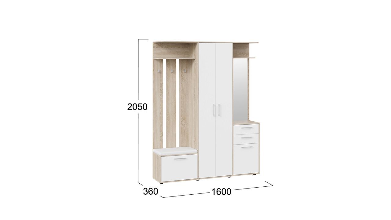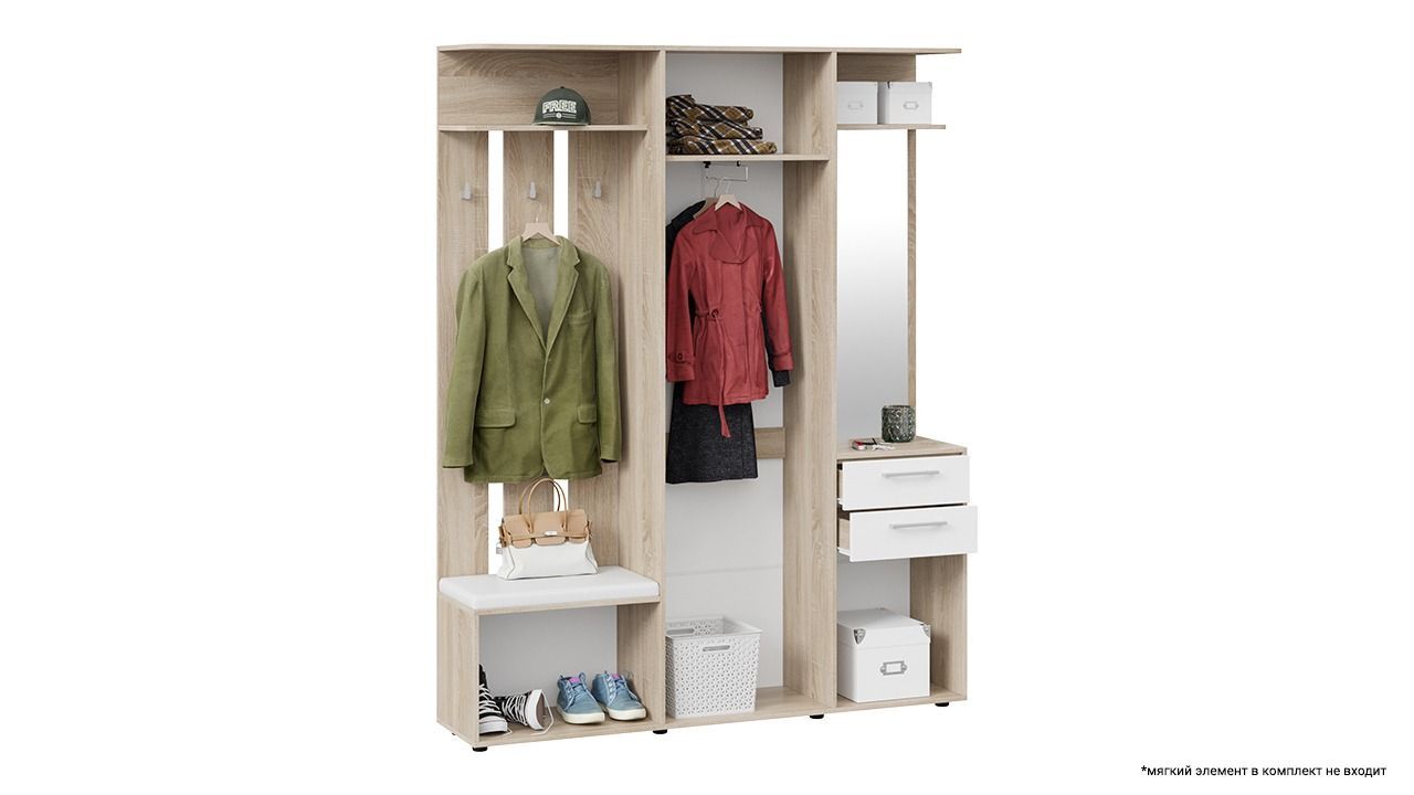 Особенностью данного комплекта является наличие вешалки со штангой для вешалок, обувницы, полок и ящиков. Это позволяет удобно разместить одежду, обувь и аксессуары.