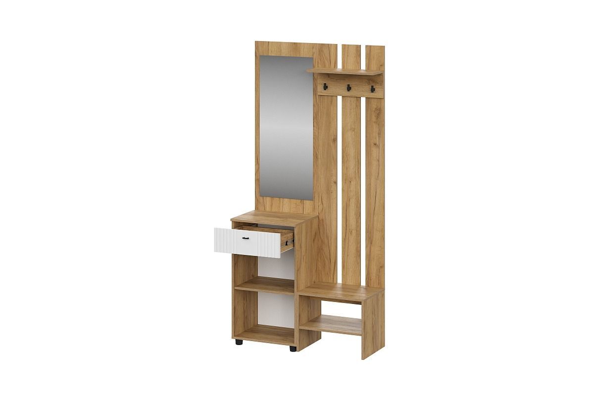 В состав комплекта входят такие элементы, как вешалка, зеркало, обувница, шкаф-пенал и пуфик. Вешалка оснащена штангой для вешалок, что позволяет удобно разместить верхнюю одежду. Зеркало поможет вам быстро оценить свой внешний вид перед выходом из дома. Обувница и шкаф-пенал обеспечивают дополнительное пространство для хранения обуви и других вещей.