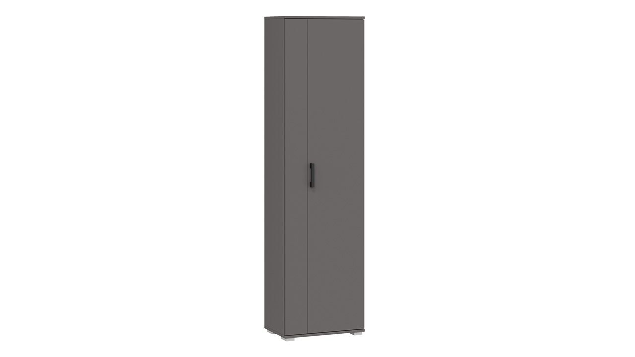 Прихожая выполнена в современном стиле и имеет темно-серый цвет, что придает ей стильный и современный вид.