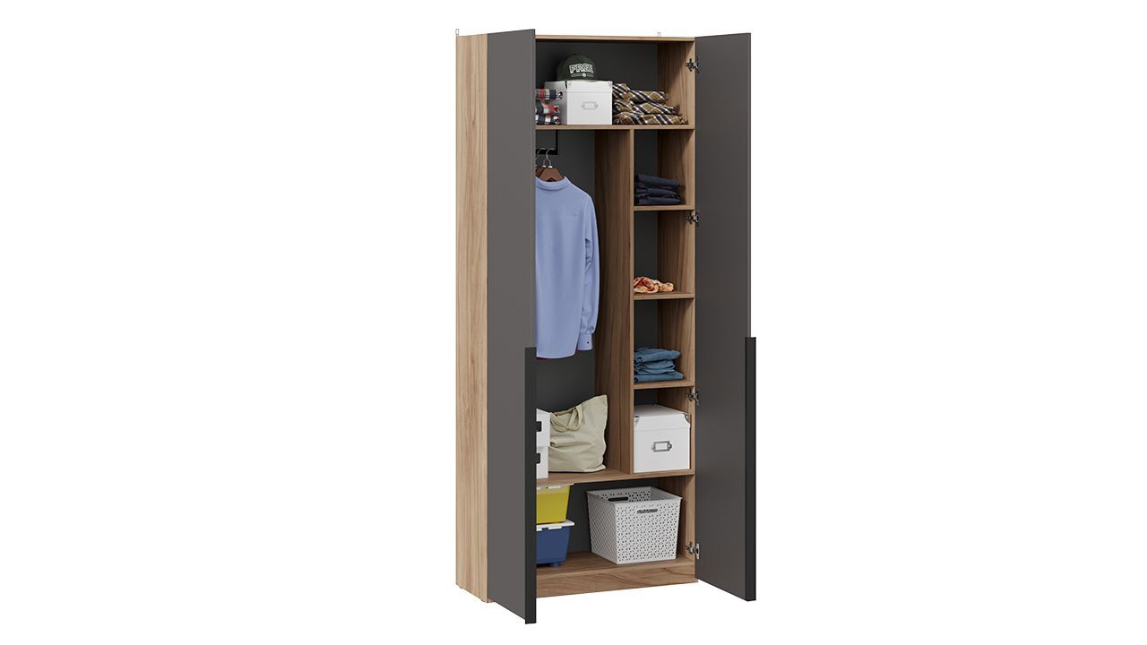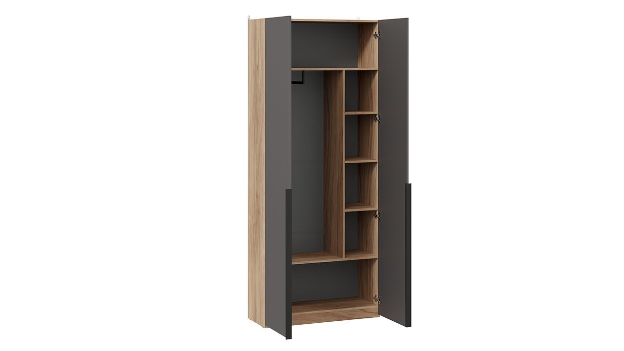- Бежевый и темно-серый оттенки "Яблоня Беллуно/Графит софт" придают мебели изысканный и современный вид.