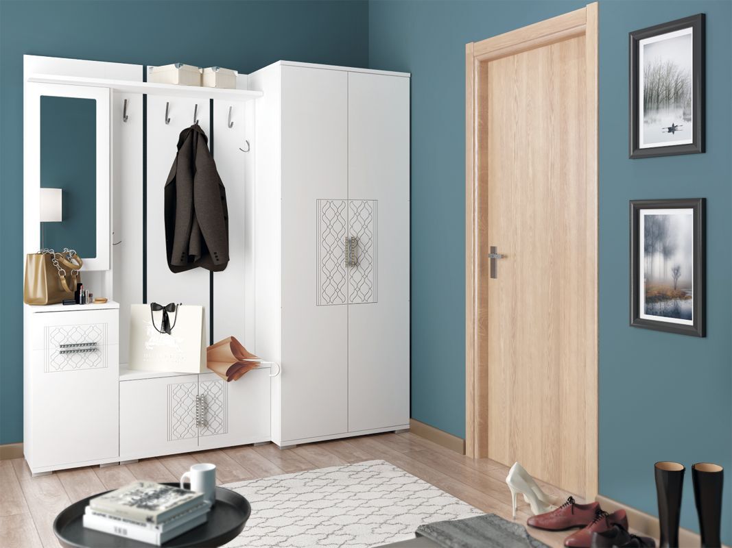 6. Вместе с любой из вешалок (М31 или М32) и шкафом М01 из серии Тиффани тумба формирует полноценную прихожую.