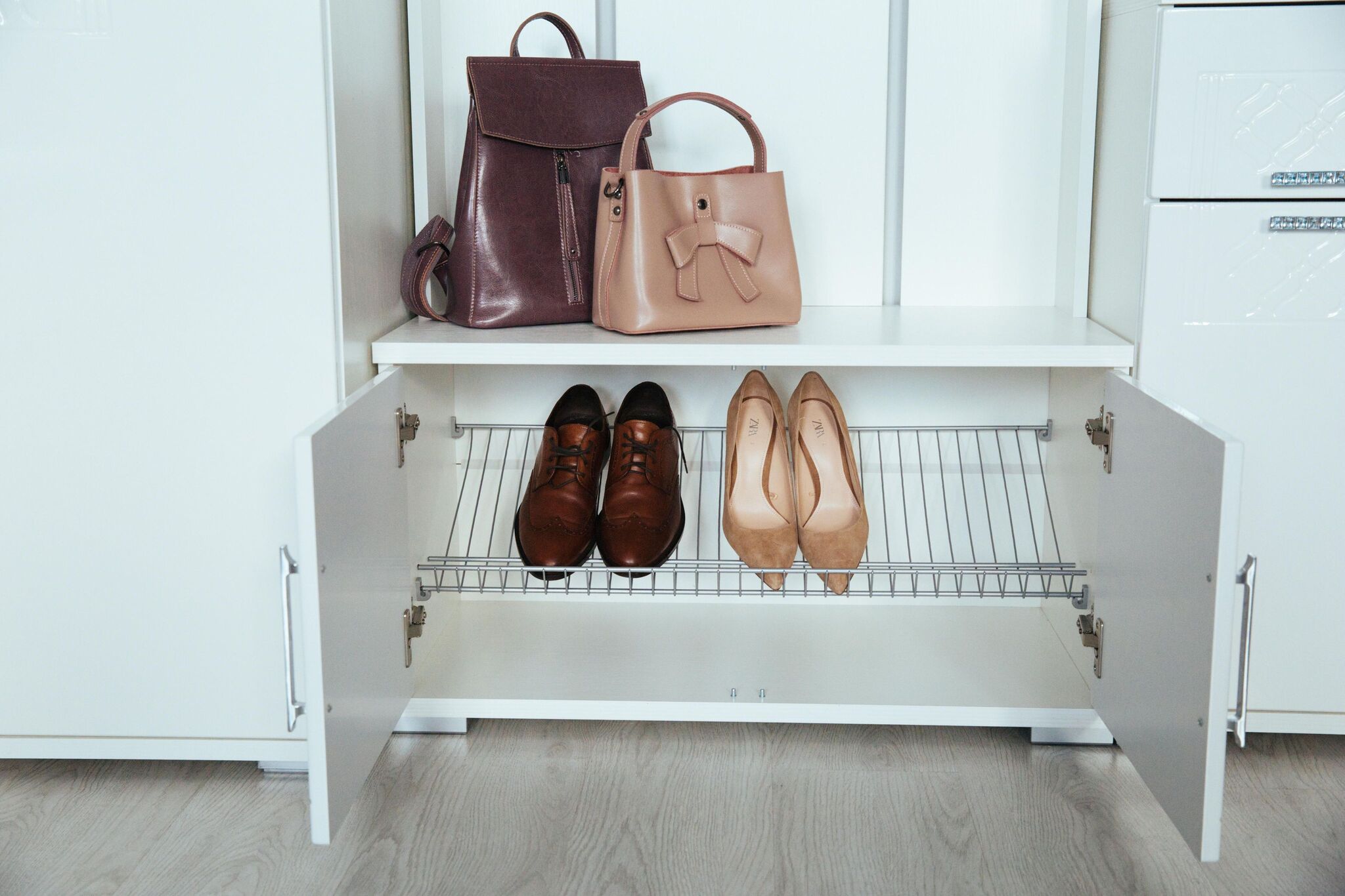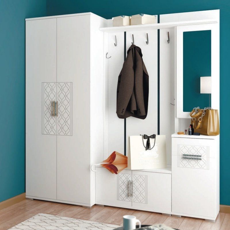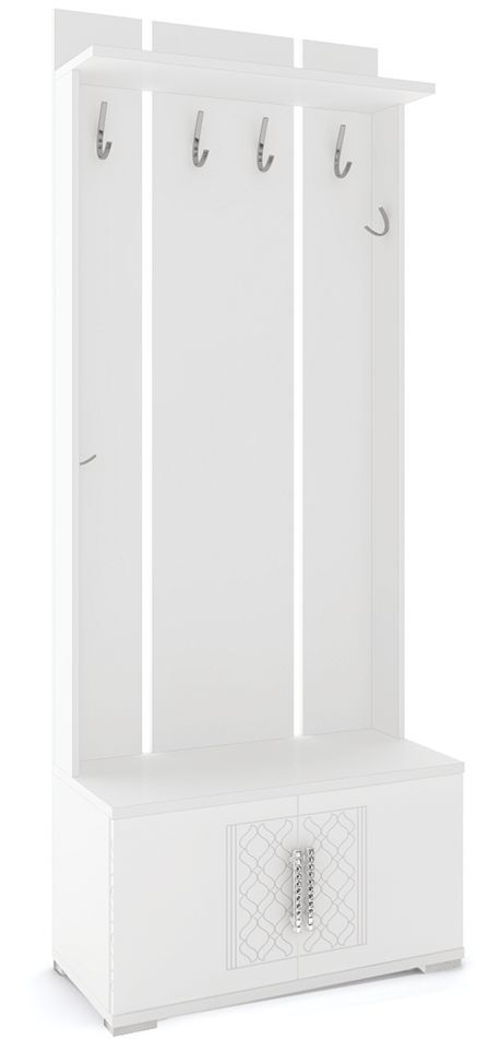 5. В исполнении модуля М32 данная вешалка представлена с фасадами, закрывающими нижнюю обувную секцию.