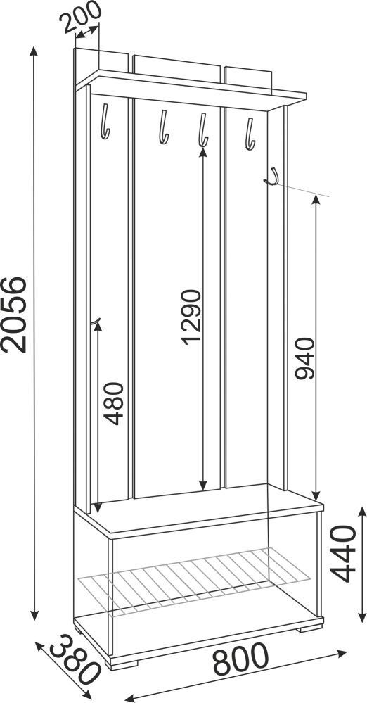 2. Четыре больших крючка под одежду и два маленьких для сумок, ключей и пр.