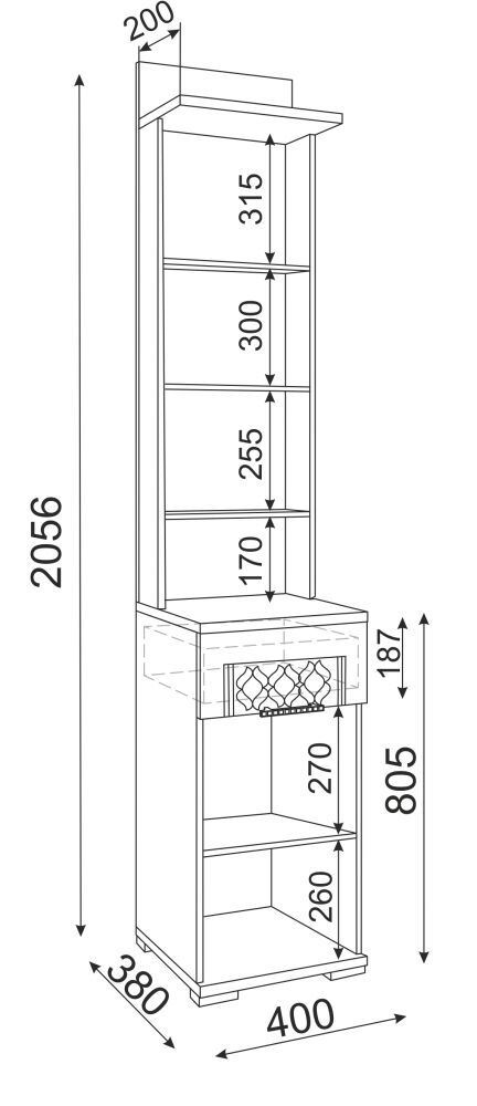 Расстояние между полками, мм255-315мм