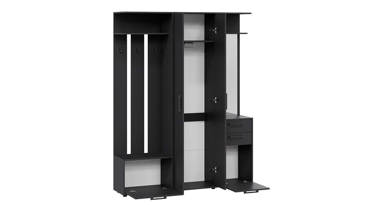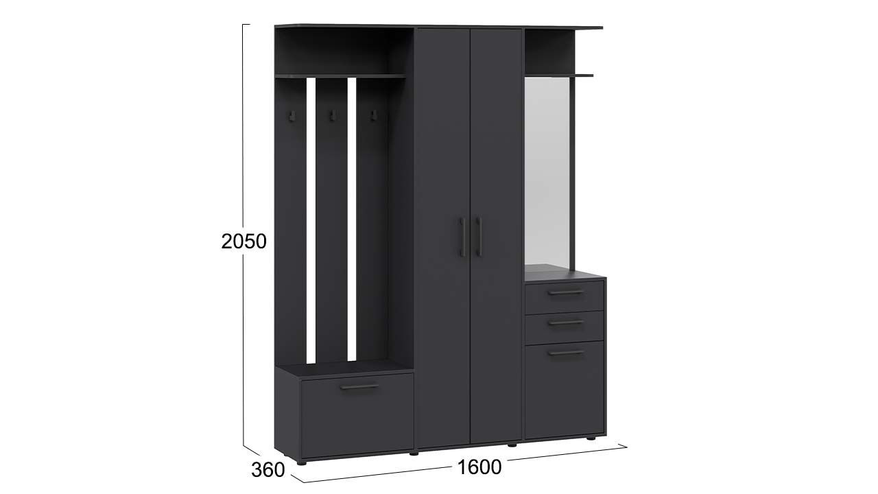 Прихожая с зеркалом "Антрацит" - это комплект мебели, который включает в себя все необходимые элементы для создания уютной и функциональной зоны в прихожей.