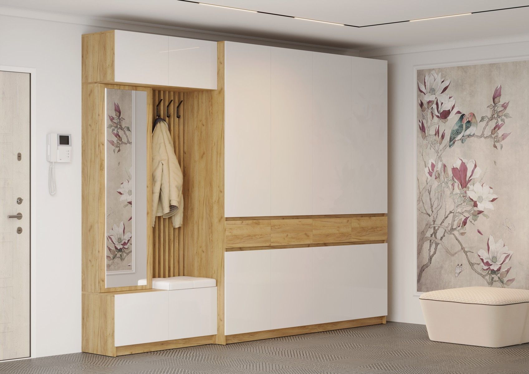 Внутреннее пространство шкафа распашного оснащено полками, которые позволяют вам удобно организовать хранение одежды, обуви, аксессуаров и других предметов. Вы сможете легко разместить все ваши вещи так, чтобы они были всегда под рукой.