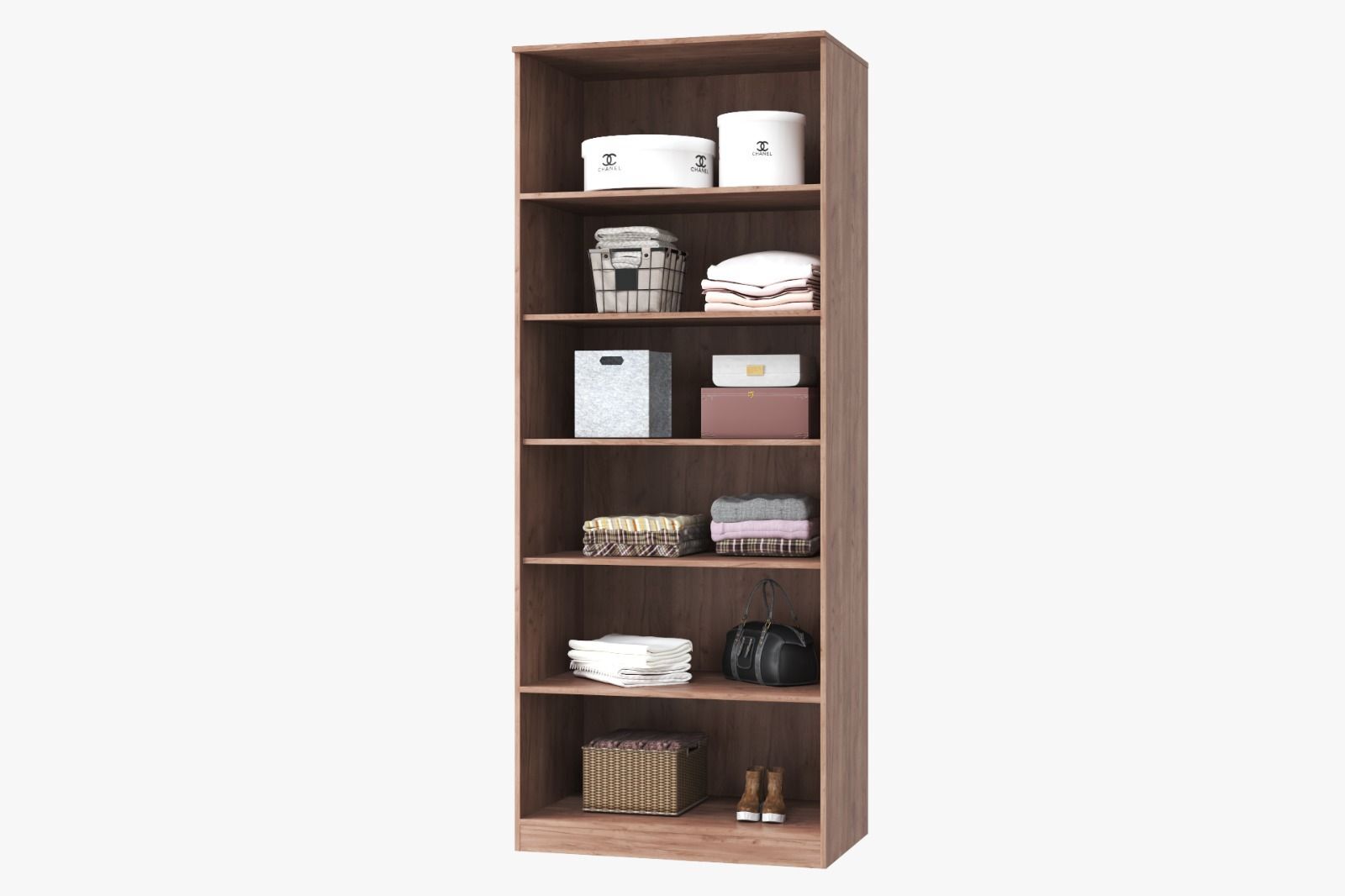 Особенностью шкафа является его конструкция - распашные двери открываются в стороны, что обеспечивает удобный доступ к содержимому. Внутри шкафа расположены пять полок, что позволяет разместить большое количество одежды и других вещей.