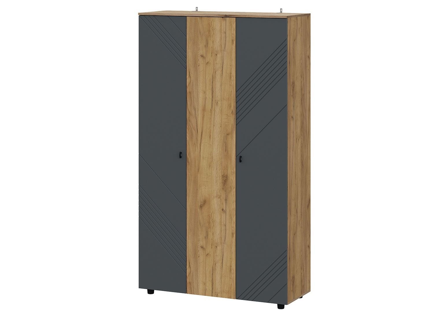 Трехстворчатый шкаф "Байкал" выполнен в современном стиле и станет ярким акцентом в интерьере. Центральная дверь шкафа выполнена в теплом оттенке "Дуб Золотой", боковые створки - из МДФ цвета графит с фрезеровкой. Черные ручки дополняют гармоничный образ.