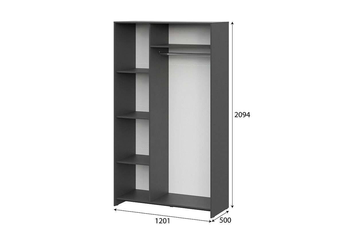 Шкаф для одежды распашной с зеркалом и полками Графит/Белый 120х50х209 см - это современное и функциональное решение для хранения одежды и других предметов.