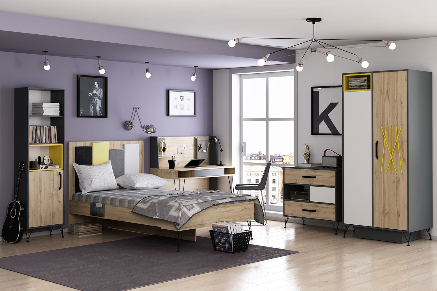 Шкаф-пенал с полками и дверцей Дуб ирландский/Антрацит 51х30х180 см