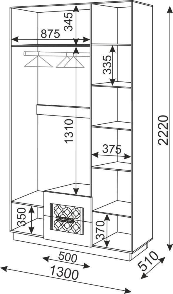 1. Внутреннюю компоновку шкафа можно собрать на левую или правую сторону.