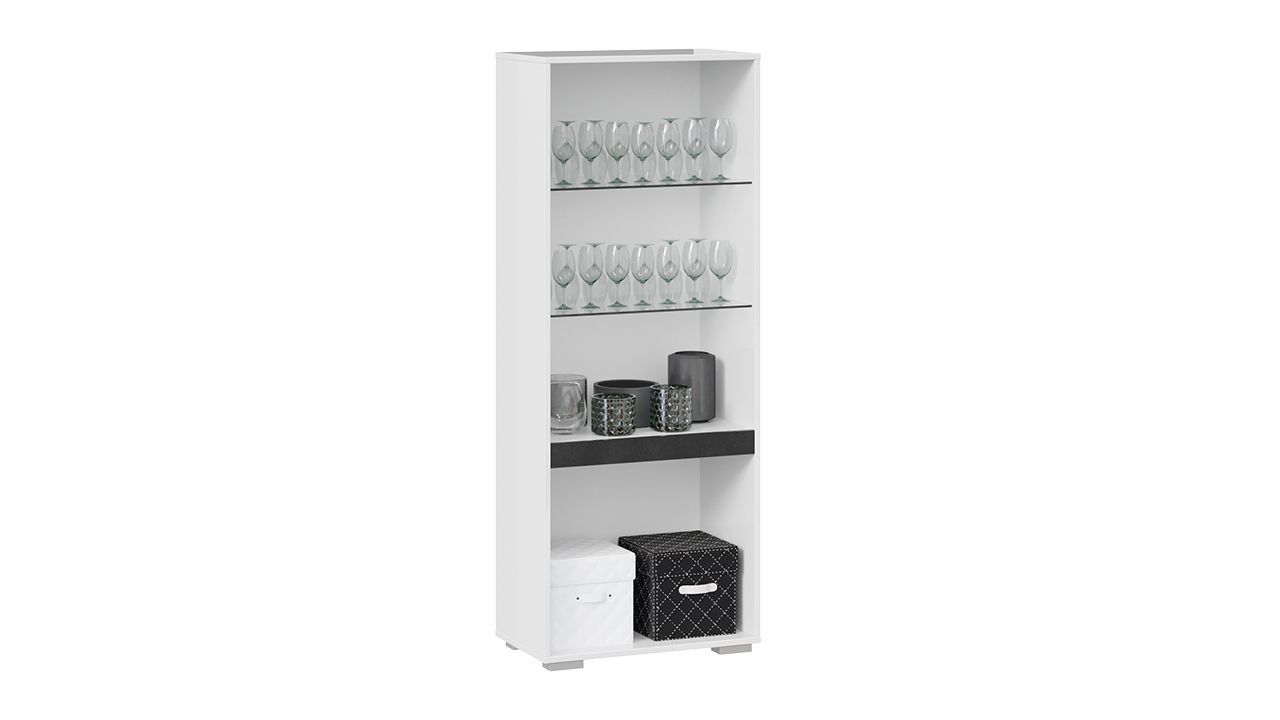 Шкаф-витрина оборудован одной открывающейся в стороны дверью, за которой расположены три полки. Это позволяет удобно разместить различные предметы и аксессуары, а также обеспечивает легкий доступ к содержимому.