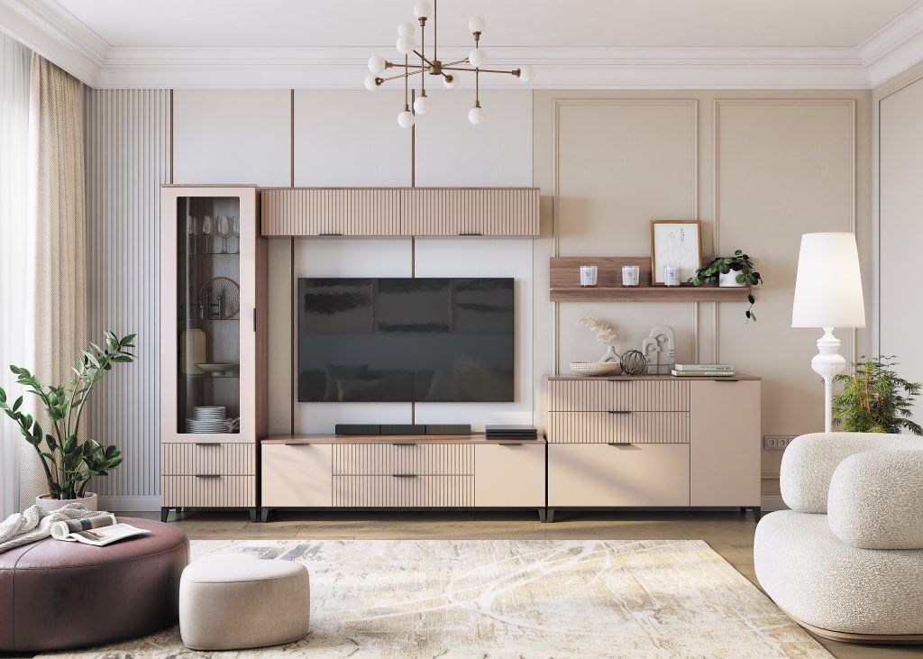 Шкаф-витрина оснащен одной распашной, раздвижной, открывающейся в стороны и выдвижной дверью. Это позволяет вам выбрать наиболее удобный способ доступа к содержимому.