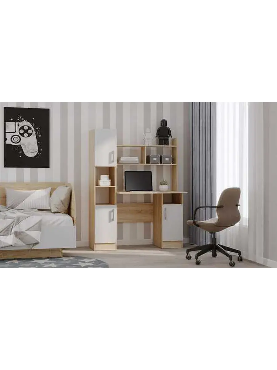Размеры: Высота: 1600 мм Ширина: 1250 мм Глубина: 570 мм Особенности: Модульная система из нескольких элементов Широкий выбор современных декоров корпуса и фасадов Современная крепёжная фурнитура Столешница обработана кромкой толщиной 1 мм Письменно-компьютерный стол ПКС-6 с пеналом и надстройкой. Столешница обработана кромкой толщиной 1 мм, что делает работу за столом более комфортной и удобной. Рабочая зона стола 930 х 370 х 570 мм. Откройте для себя идеальное сочетание стиля и функциональности с нашим компьютерным столом с ящиками, изготовленным в России из высококачественных материалов. Этот стол станет незаменимым элементом вашего интерьера, будь то кабинет, детская или офисное пространство. Изготовленный из прочных МДФ и ЛДСП, он обеспечивает долговечность и устойчивость, а надежная фурнитура гарантирует долгий срок службы. Наш ассортимент предлагает большой выбор моделей в различных цветах и стилях — от классического до скандинавского. Вы легко найдете подходящий вариант, который гармонично впишется в ваш интерьер, создавая уют и комфорт в вашем доме. Стол идеально подходит для работы и учебы, благодаря продуманной конструкции и наличию удобных ящиков и полок. Компьютерный стол с полками и ящиками предоставляет обширные возможности для хранения. Полки идеально подходят для книг или декора, а вместительные ящики позволят хранить письменные принадлежности и другие необходимые вещи в порядке. Это делает стол не только красивым, но и универсальным решением для школьника или профессионала.