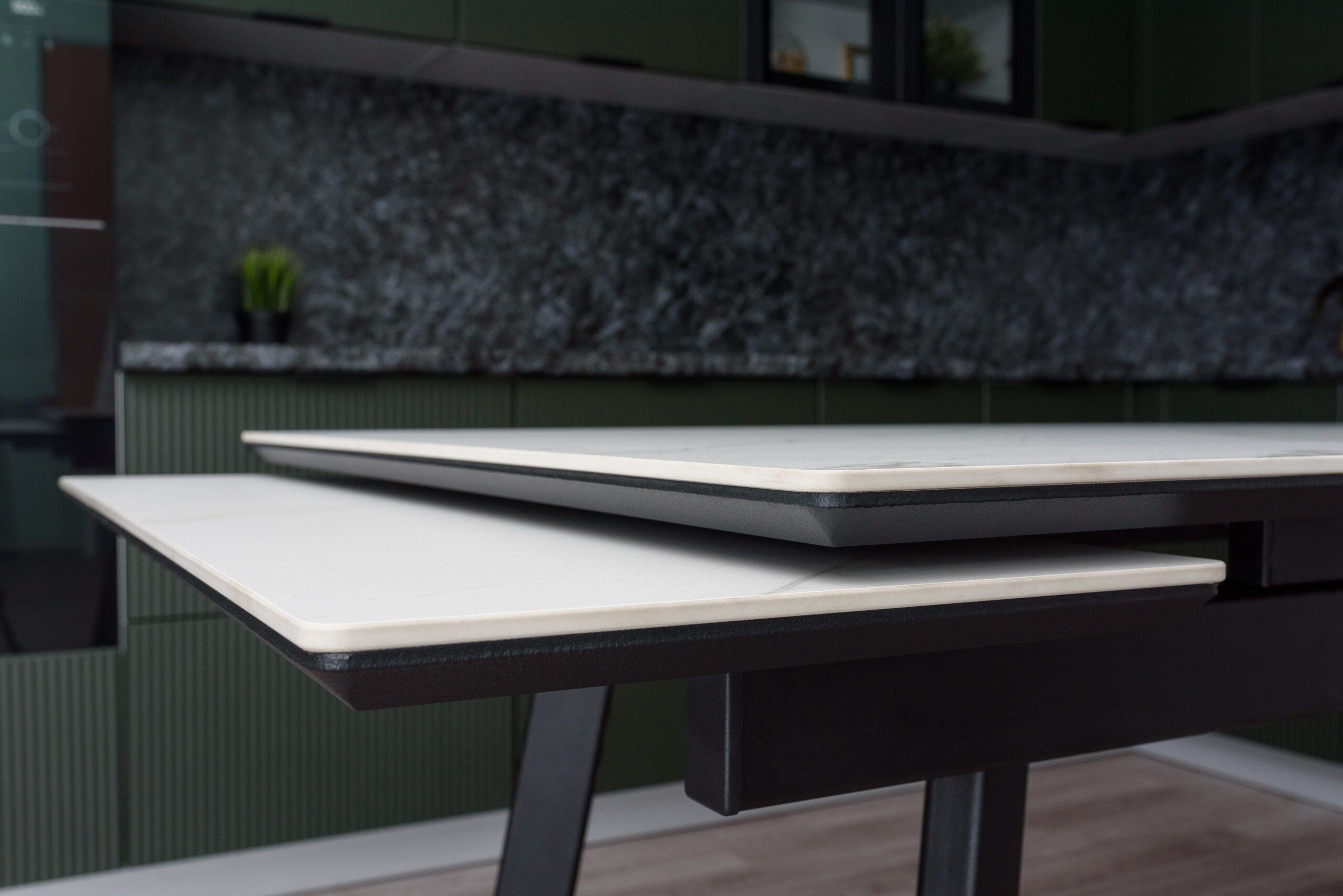 Стол кухонный обеденный раздвижной Белый 140х80х74 см - это стильное и элегантное решение для вашей кухни или столовой. Изготовленный из высококачественного керамогранита, этот стол не только прочен и долговечен, но и обладает прекрасным эстетическим видом, который никого не оставит равнодушным.