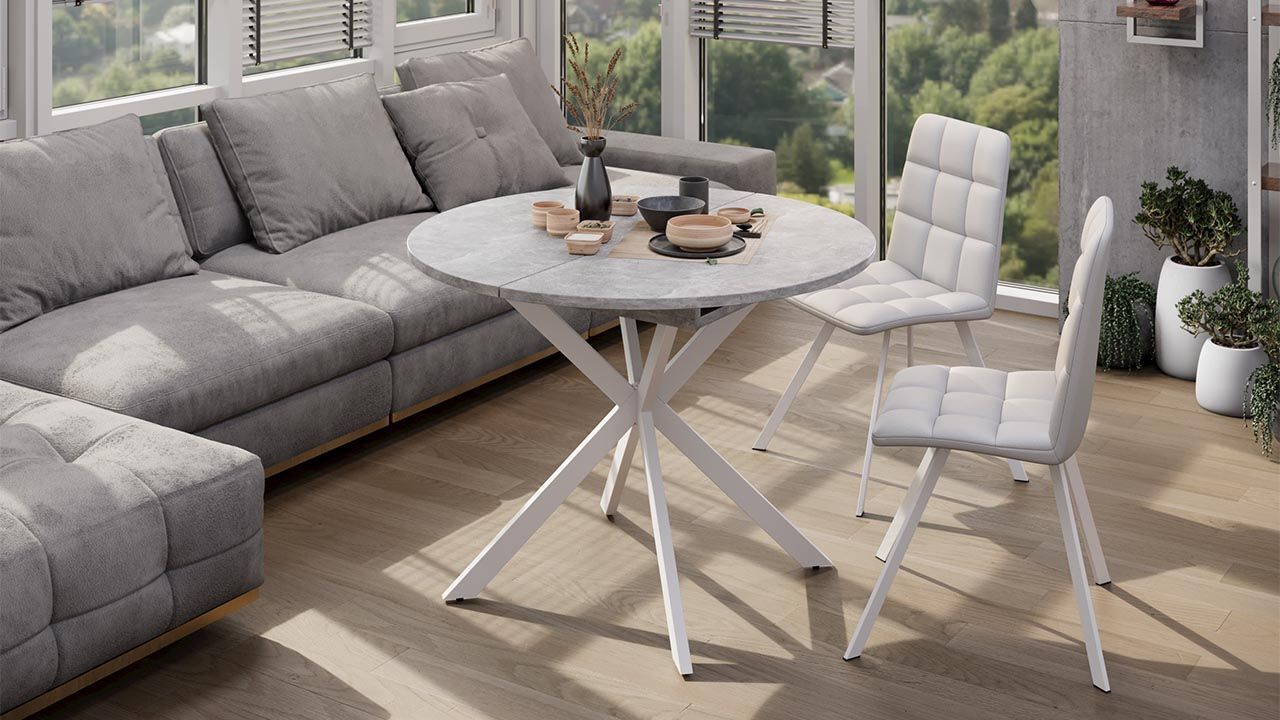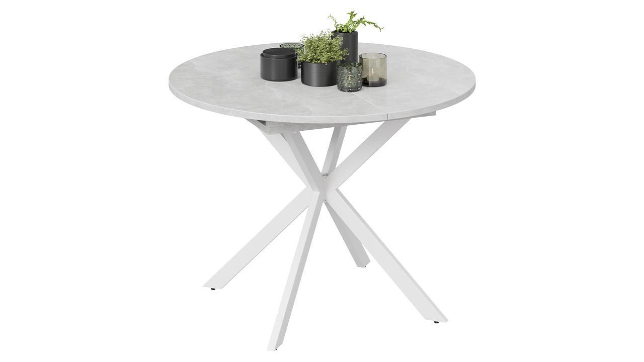 Стол кухонный обеденный круглый раздвижной Белый муар/Ателье светлый 100(131)х100х75 см