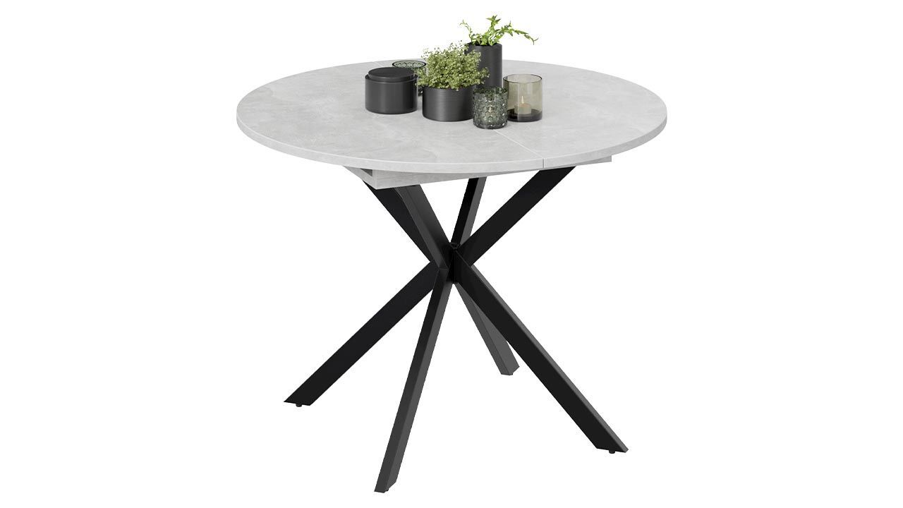 Стол кухонный обеденный круглый раздвижной Черный муар/Ателье светлый 100(131)х100х75 см