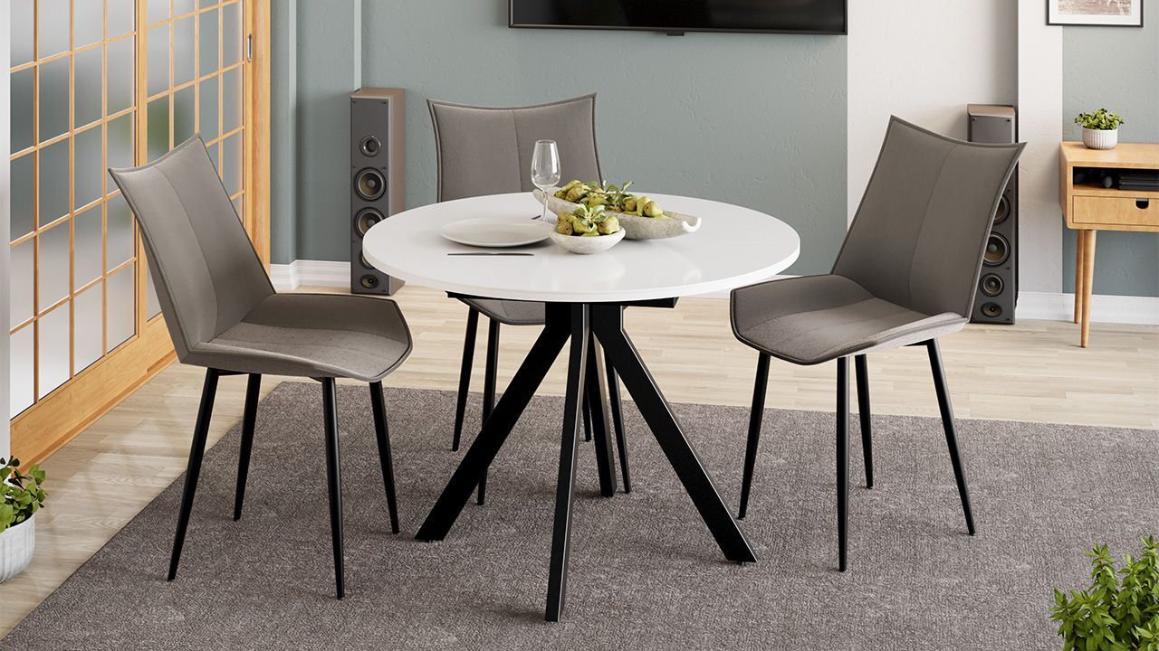 Стол обеденный «Дуглас» Тип 2 привлекает свое внимание элегантной, круглой формой столешницы в сочетании с запоминающимся дизайном металлических опор. В новинке соединены модные тенденции, минимализм и лаконичность - с одной стороны, и практичность вместе с удобством и комфортом – с другой.