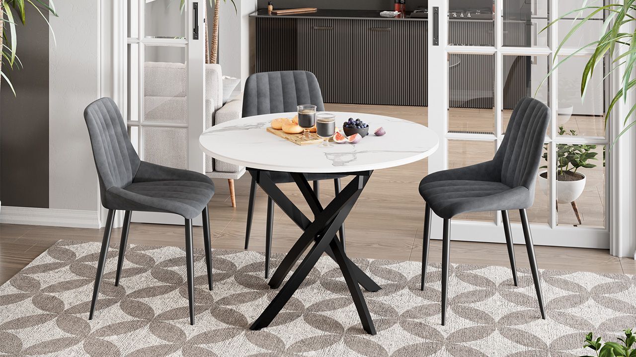 Стол обеденный «Дуглас» Тип 1 привлекает свое внимание элегантной, круглой формой столешницы в сочетании с запоминающимся дизайном металлических опор. В новинке соединены модные тенденции, минимализм и лаконичность - с одной стороны, и практичность вместе с удобством и комфортом – с другой.