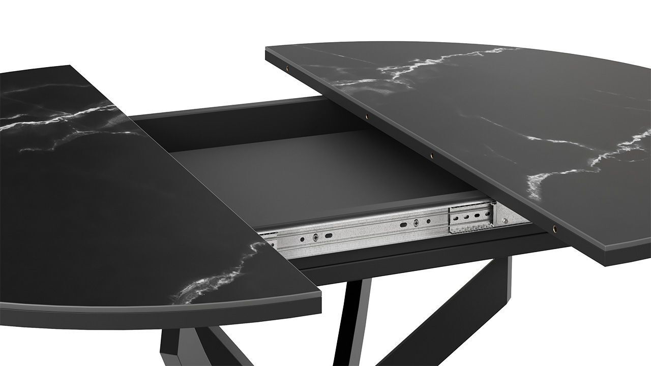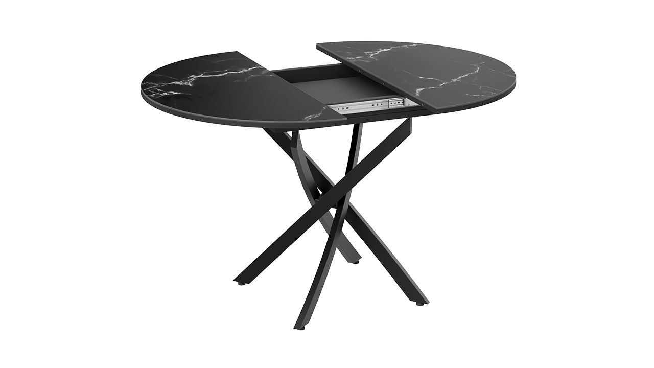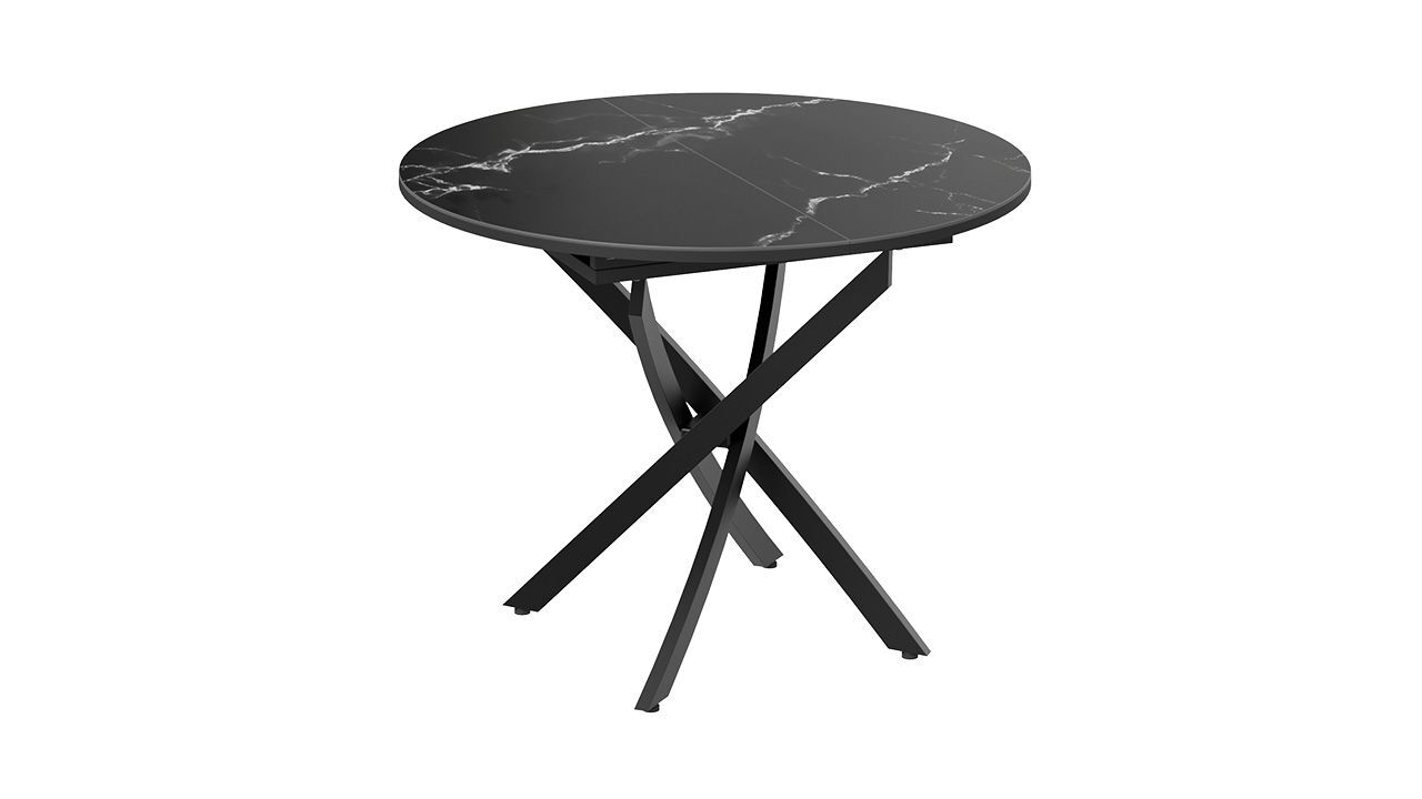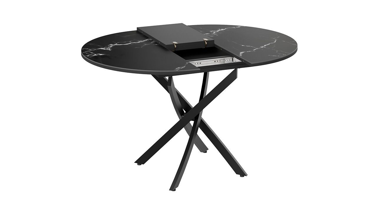 Стол кухонный обеденный круглый раздвижной Черный муар/Стекло матовое черный мрамор 100(132)х75х75 см