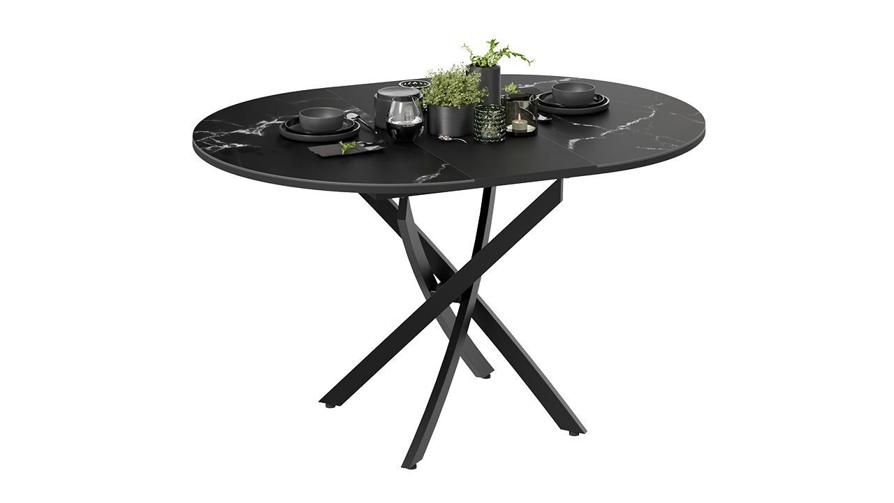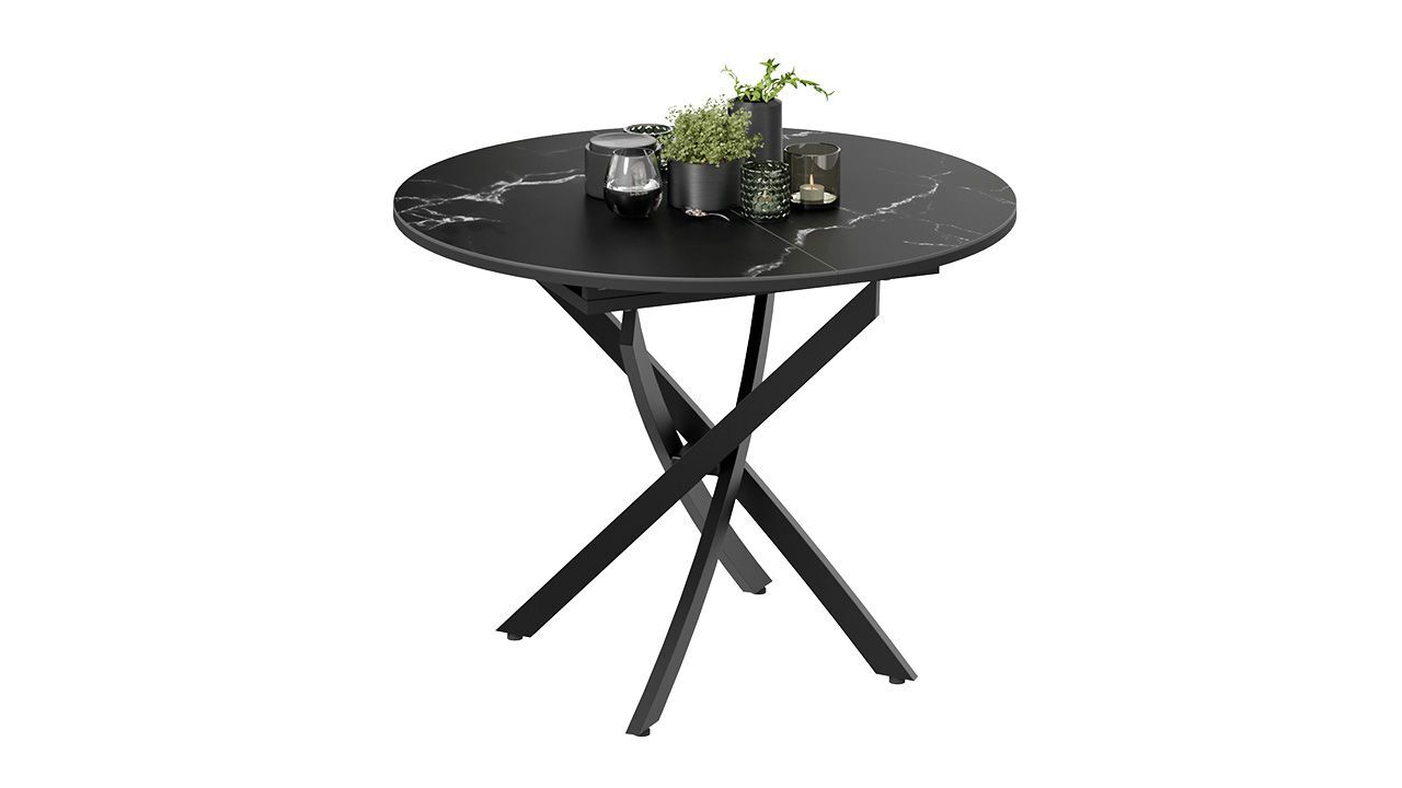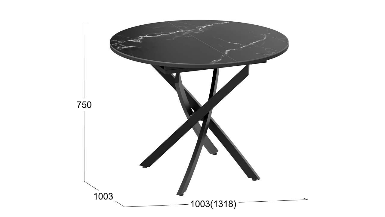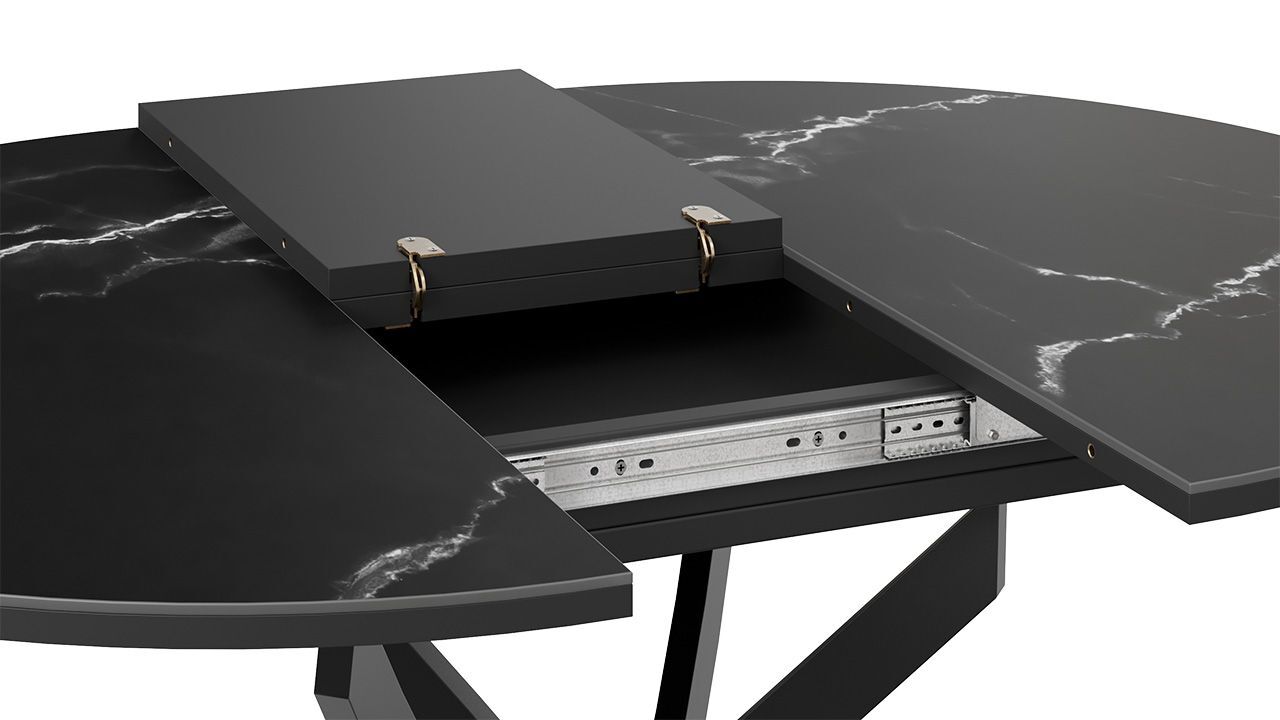 Стол кухонный обеденный круглый раздвижной Черный муар/Стекло матовое черный мрамор 100(132)х75х75 см