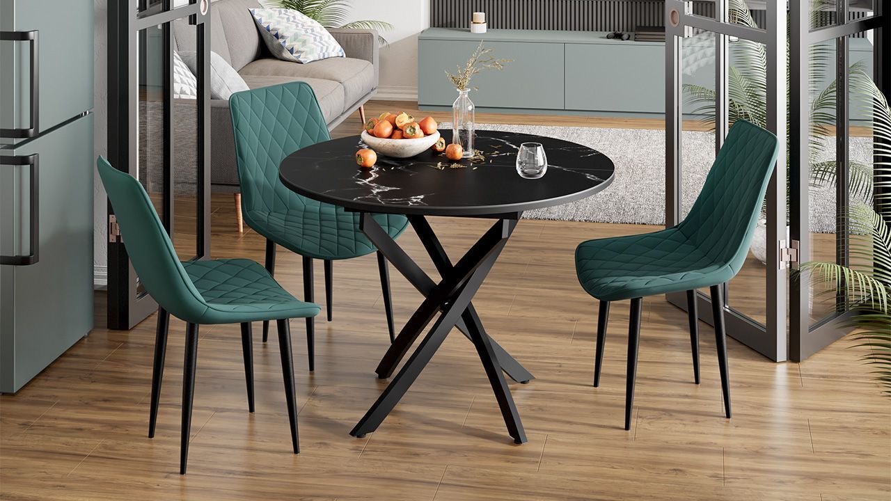 Стол обеденный «Дуглас» Тип 1 привлекает свое внимание элегантной, круглой формой столешницы в сочетании с запоминающимся дизайном металлических опор. В новинке соединены модные тенденции, минимализм и лаконичность - с одной стороны, и практичность вместе с удобством и комфортом – с другой. Материалы и дизайн. Столешница данной модели изготовлена из ЛДСП 16 мм и закаленного стекла 4 мм. Особого внимания заслуживает конструкция основания. «Дуглас» Тип 1 представляет собой основание из четырех оригинально соединенных опор. Каждая из них выполнена с особым вниманием к деталям. Такая конструкция создает ощущение стабильности и гармонии. Опора покрыта порошковой краской «Черный муар», что придает поверхности глубокий, насыщенный оттенок с эффектом муара. Современное цветовое оформление. Новинка представлена в декорах с глянцевой, матовой белой и черной, с рисунком «под мрамор» столешницей, которые выглядят презентабельно, стильно и элегантно. Функциональность. Стол имеет надежный ручной синхронный механизм раздвижения со вставкой «бабочка», которая укладывается вручную. Это выручает в моменты прихода гостей, которых хочется разместить свободно и с комфортом. В основании ножек есть регулируемые подпятники для хорошей устойчивости и отсутствия скольжения. Надежность конструкции. Благодаря металлическому основанию конструкция стола устойчива, надежна и обеспечивает оптимальную эксплуатацию. Материал столешницы: ЛДСП 16 мм + стекло закаленное 4 мм Материал вставки: ЛДСП 22 мм Обработка торцов столешницы и вставки: кромка ПВХ 0,4 мм Материал опоры: металл Максимальная нагрузка: 40 кг, в разложенном виде 20 кг по центру, 10 кг по краям Фурнитура: синхронный механизм раздвижения, вставка «бабочка», укладывается вручную Габаритные размеры (ШхГхВ): 1003(1318)х1003х750 мм