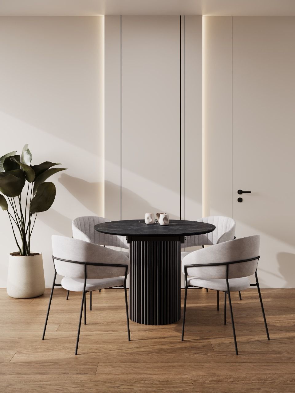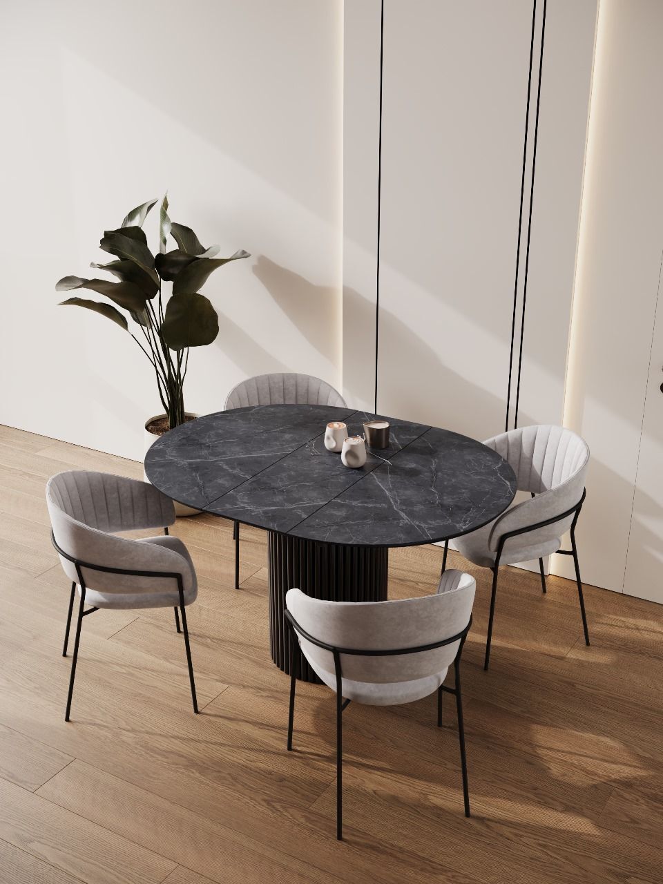 Функциональность. Модель имеет синхронный механизм раздвижения со вставкой «бабочка», которая укладывается вручную. Благодаря этому круглая столешница легко трансформируется в овальную, что позволяет разместить за ним большее количество человек свободно и с комфортом.