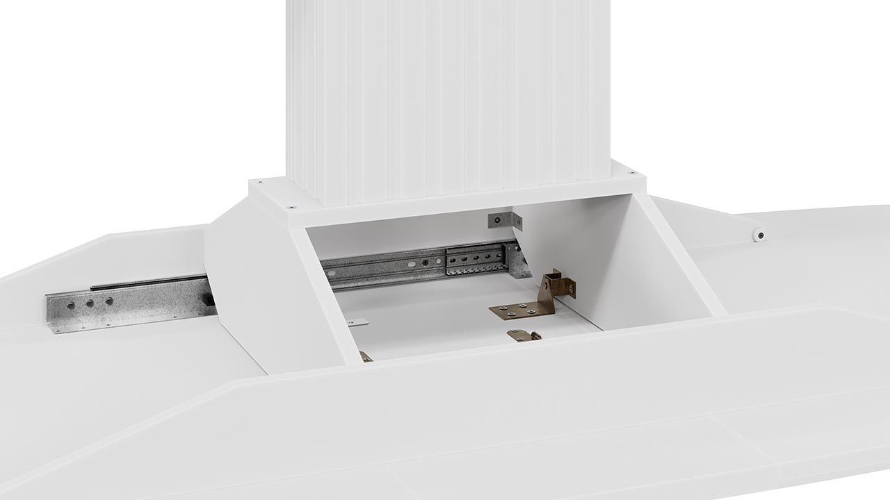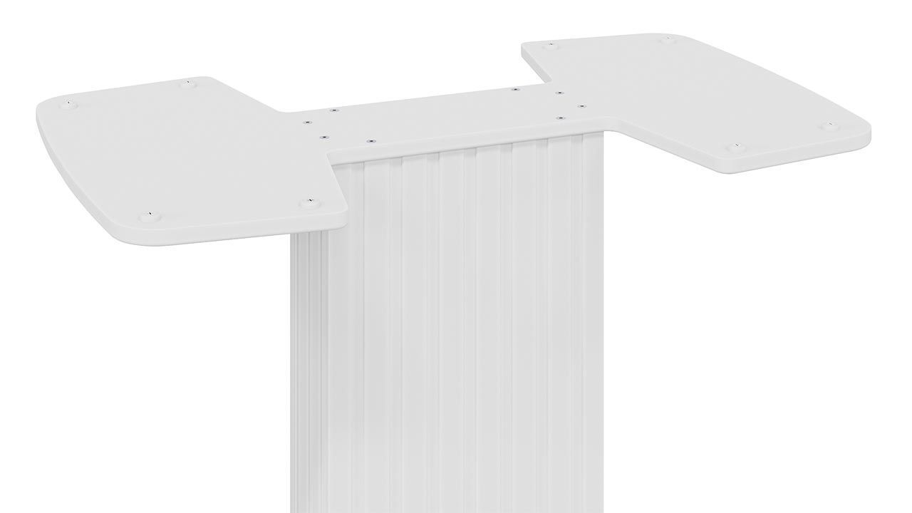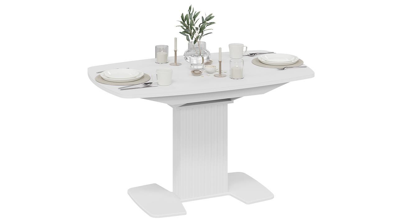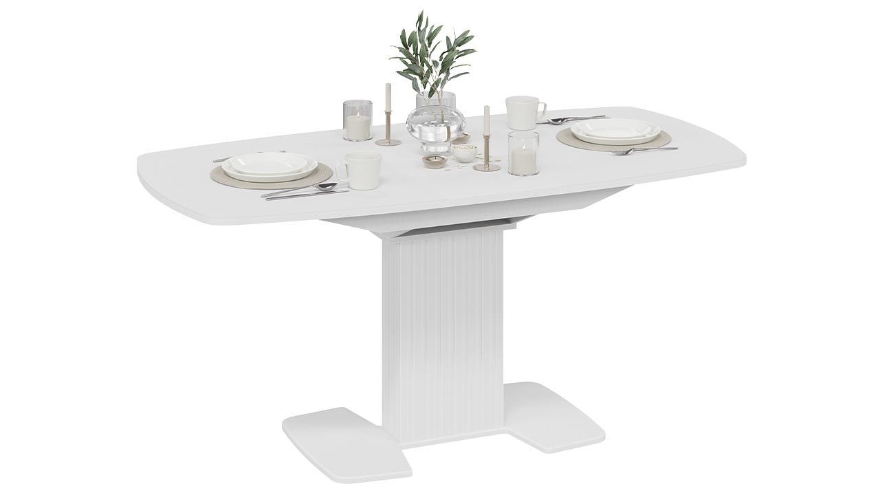 Стол выполнен в белом глянцевом цвете, который легко сочетается с различными стилями интерьера. Материал столешницы - закаленное стекло и ЛДСП, что обеспечивает прочность и долговечность изделия. Ножки и опоры стола изготовлены из МДФ, а основание и подстолье - из ЛДСП.